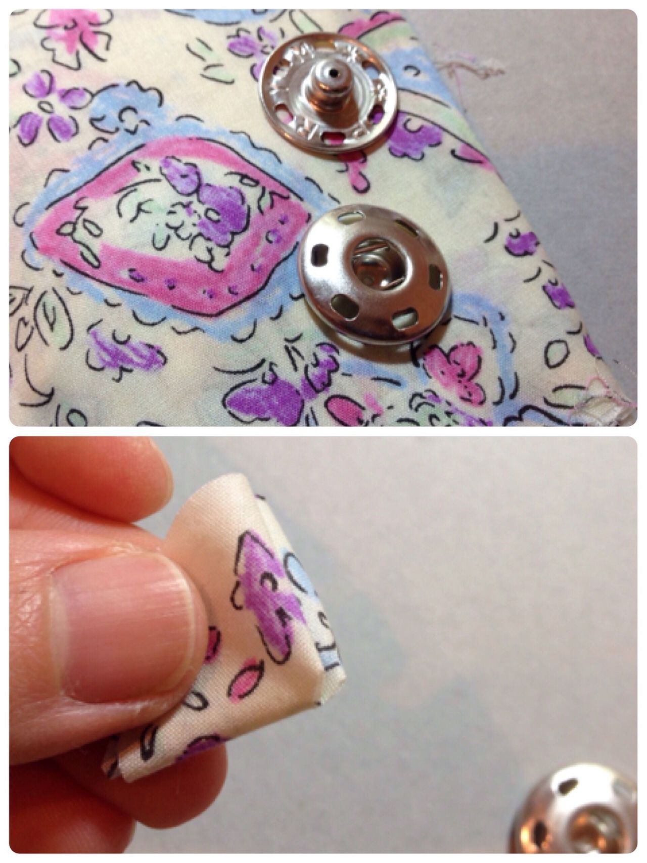 薄い生地で縫い付けのスナップをくるんであり、お洋服の前を開けた時も目立ちにくいようにできているのです。