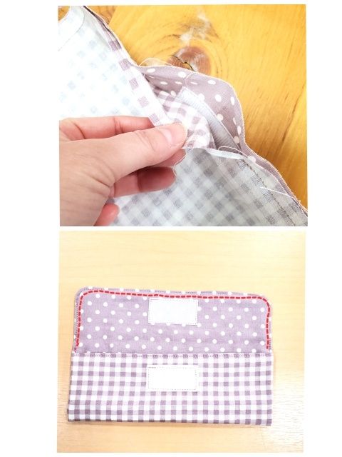 裏布の水玉柄に硬い方を付ける。