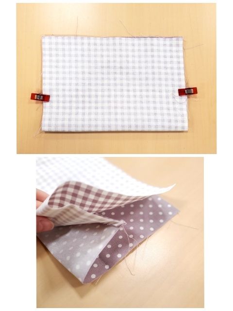 (今回は、チェック柄を表布、水玉柄を裏布で作ります。)