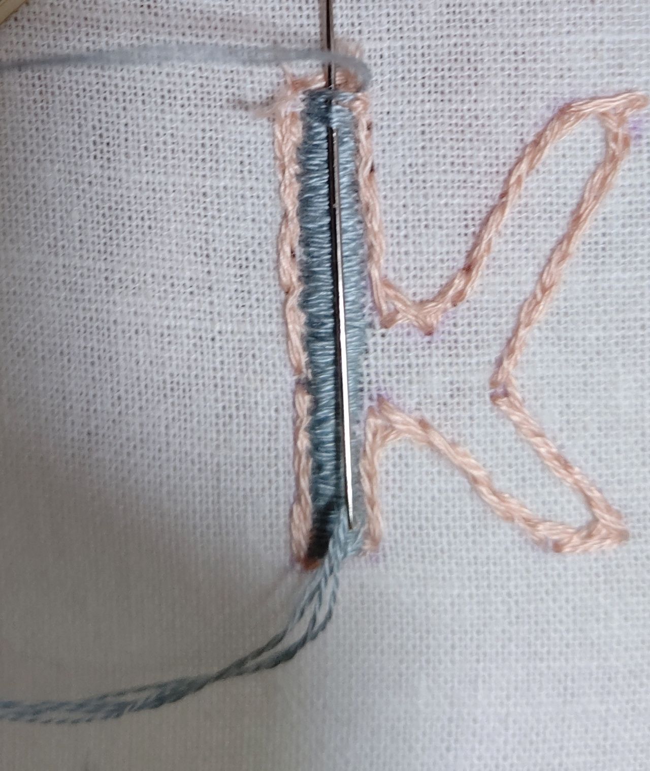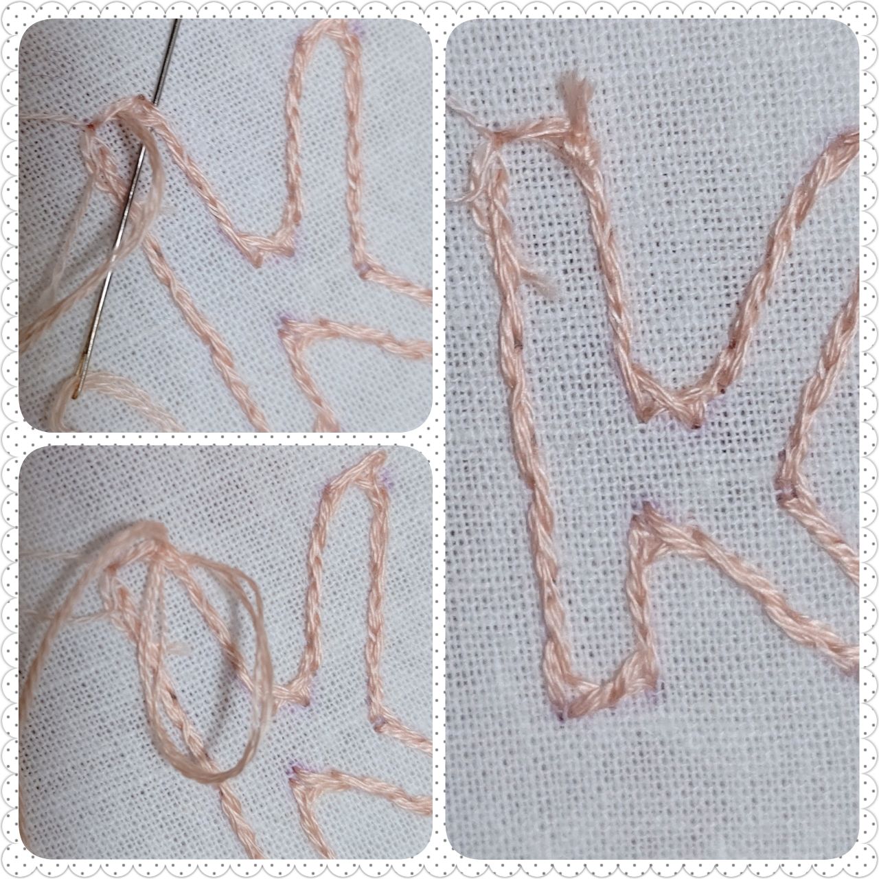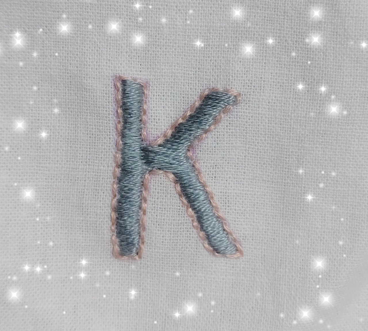 かりんのKを刺繍しました。2つのステッチしか使っていないので、簡単にできちゃいます☆