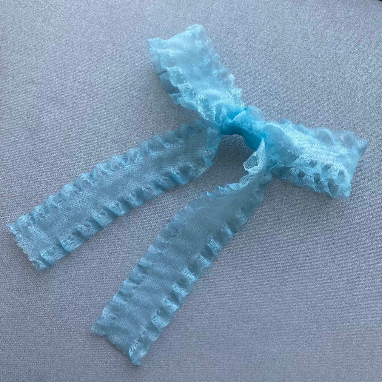 まずフリルオーガンジーリボンを使ってメインのリボンを作ります。