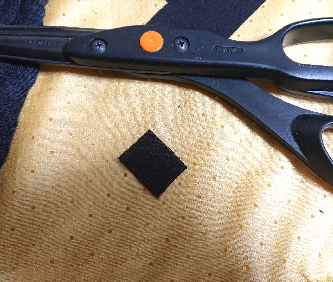 今回のニットはアイロンがかけられるニットだったので、穴が開かないようにアイロン接着の補修用品でしっかり補強します。