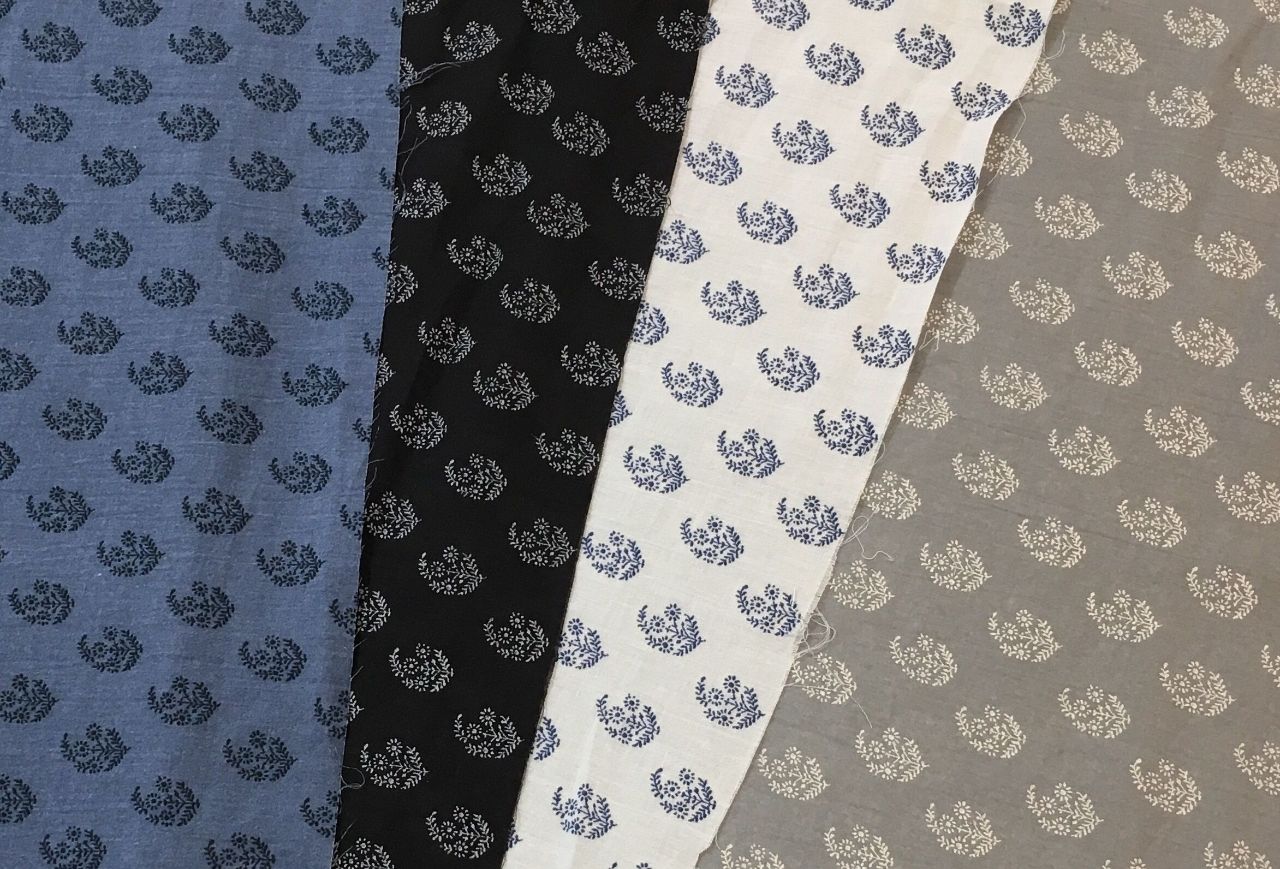 細番手の糸を平織りに織った薄手の生地。通気性がいいのと、さらっと乾いた手触りで春夏の洋服布生地によく用いられます。