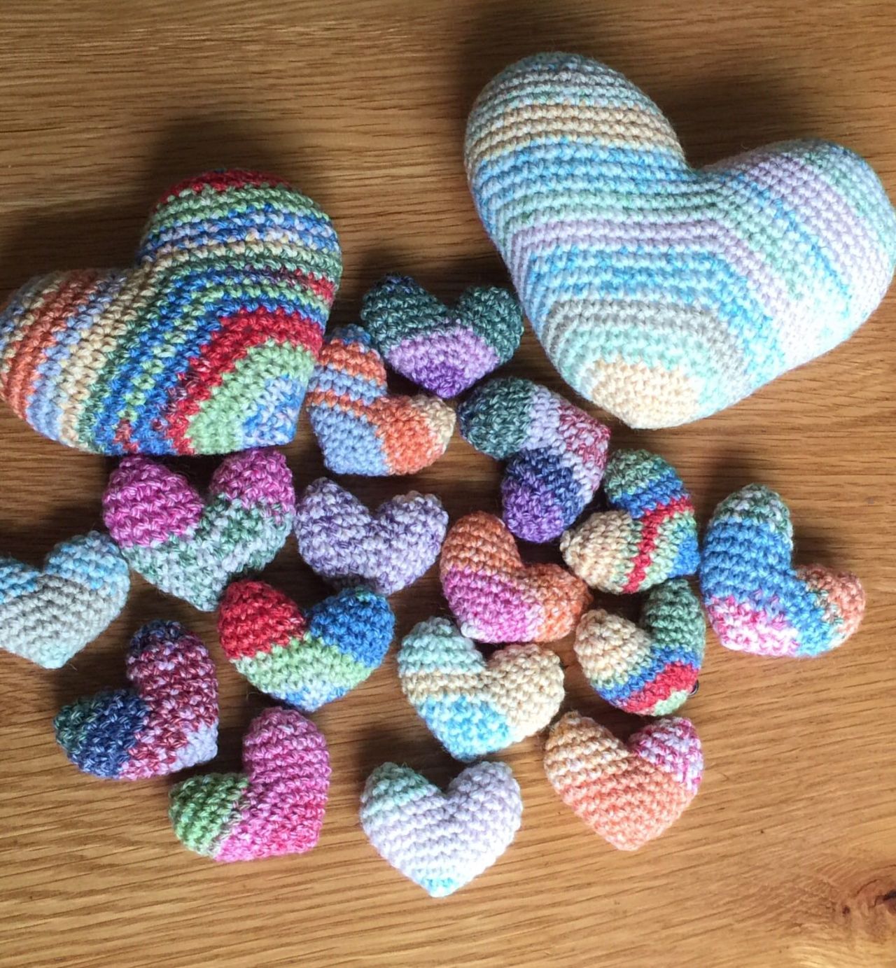 今回編んだ全てのハートを全員集合させてみました。