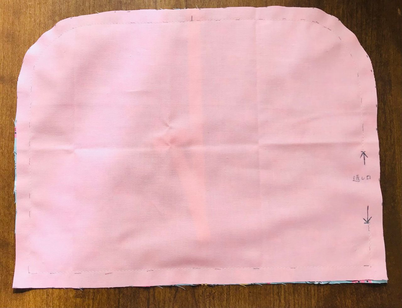 表布・裏布を中表にあわせ返し口(5cmくらい)を残して縫います。