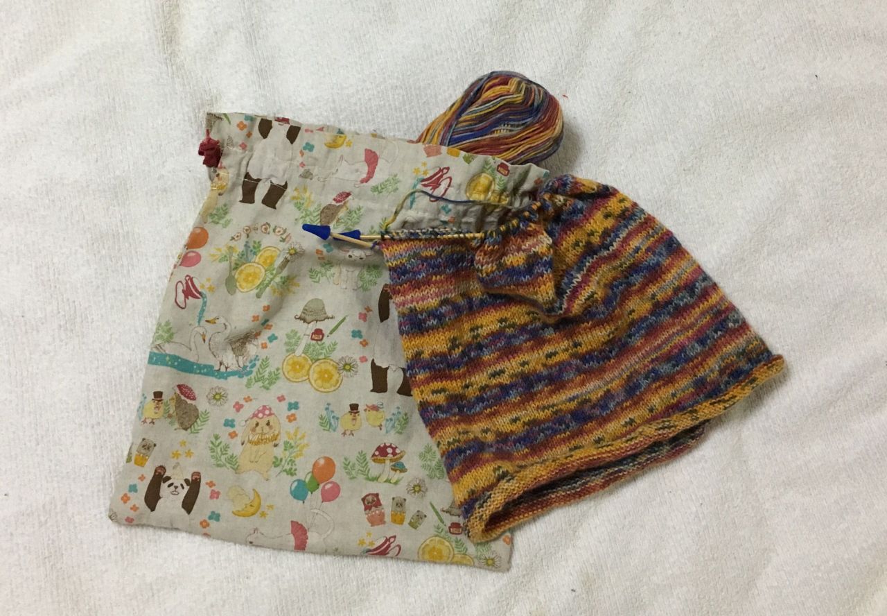 編み途中の材料を入れています。