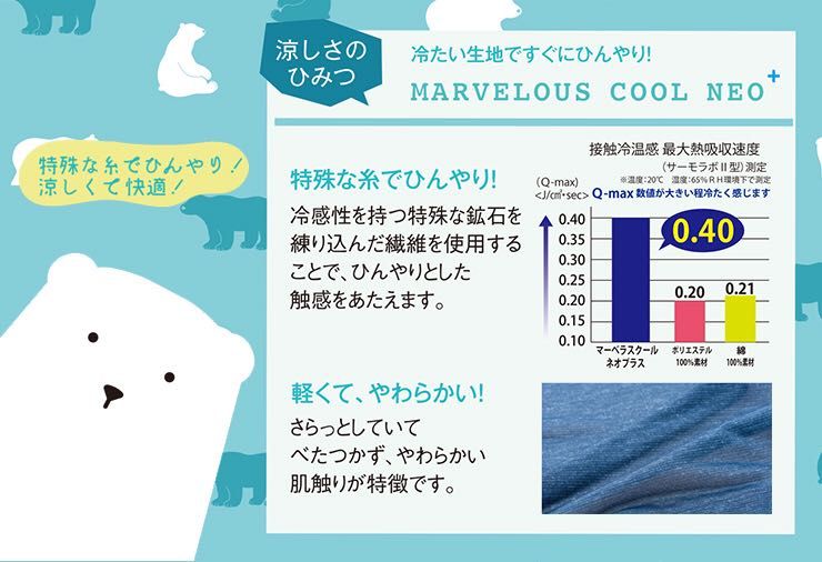冷感性を持つ特殊な鉱石を練り込んだ繊維なので、ひんやりとした触感