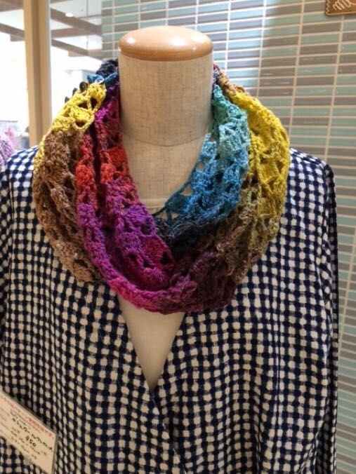 そんな時に、首にさっと巻いてアクセントにもなるストールはいかがですか?