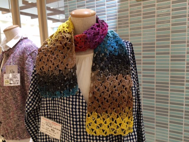 かぎ針編みの幾何学模様は個性的でどこか日本らしい柄に仕上がってます。