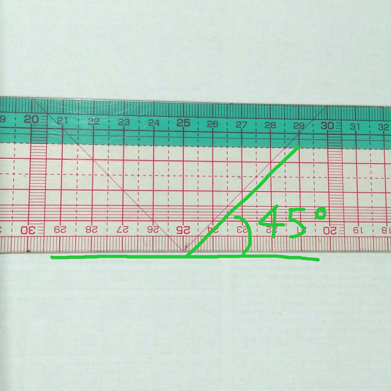 この方眼定規は45度をこうして図ることができます(^ー^)