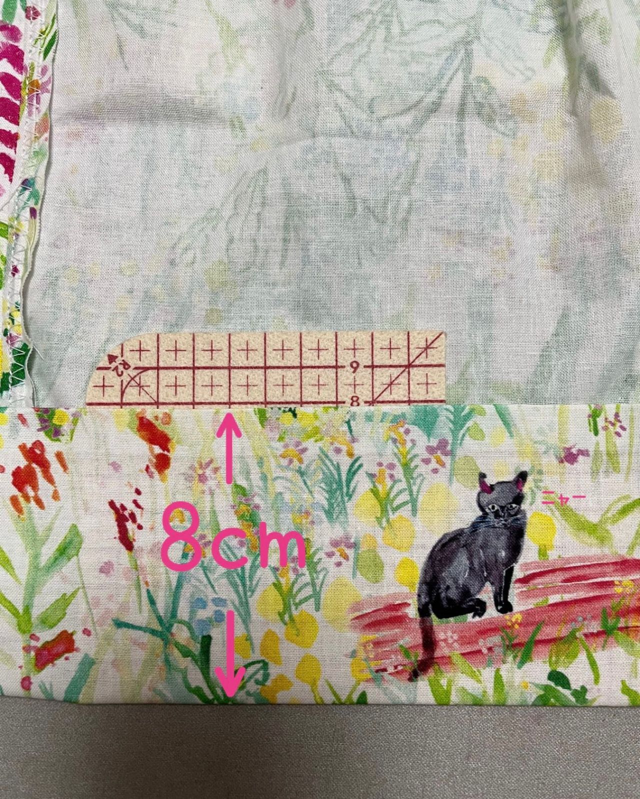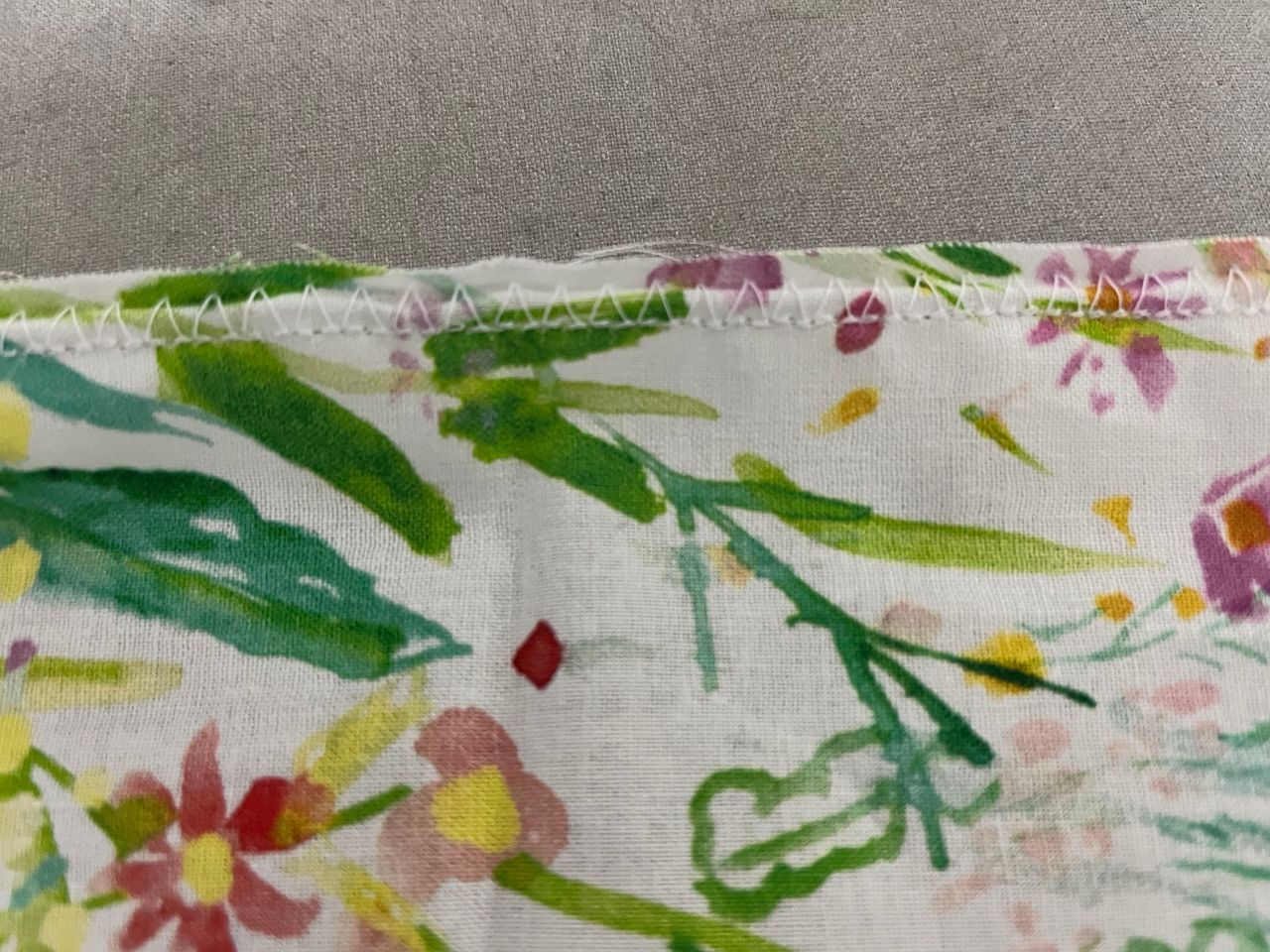 ①2枚とも両端をロックミシンかジグザグ縫いで端処理します。