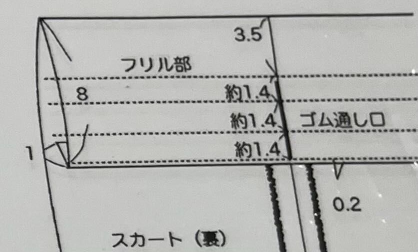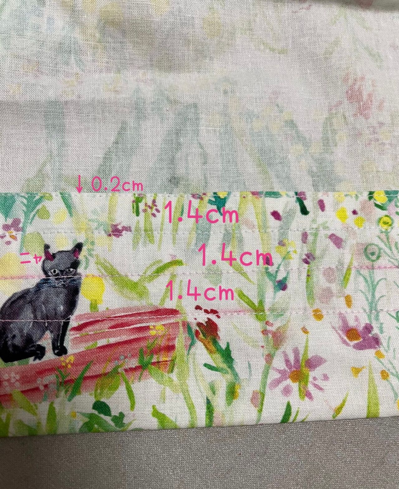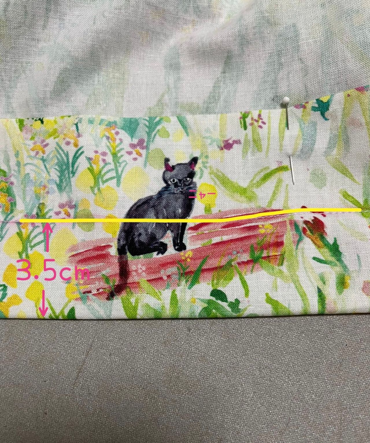 ④ウエスト線から3.5cmのところをミシンステッチします。