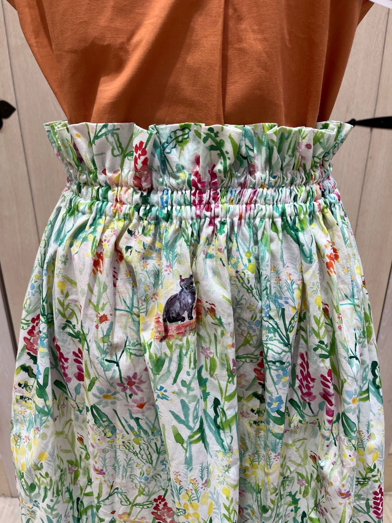 野原の中に黒猫が住み着いているかわいい生地で作りました。