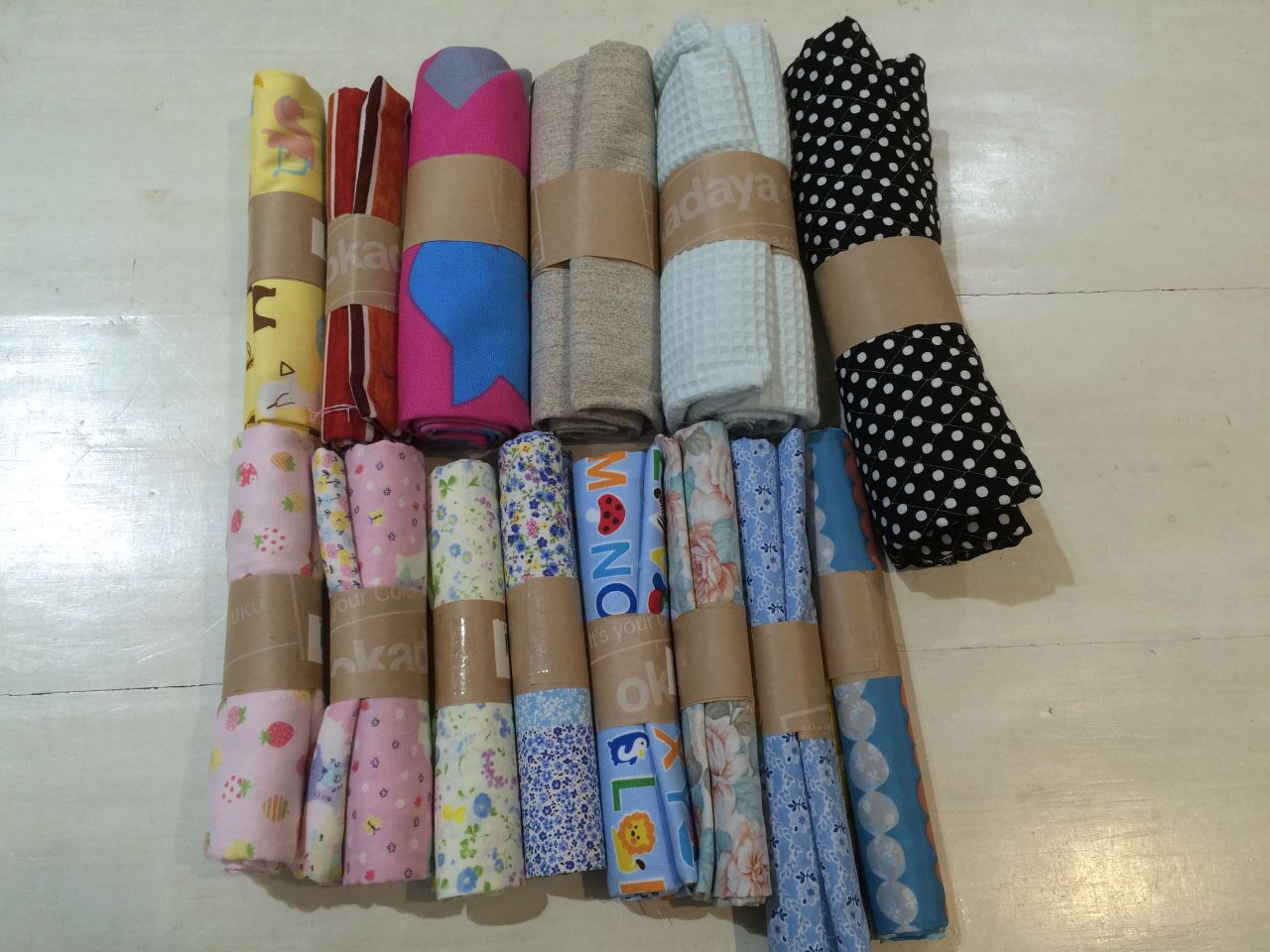 ガーゼや小物に使えそうな小さい柄、何かに使えそうな無地、キルティングもあります