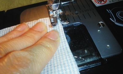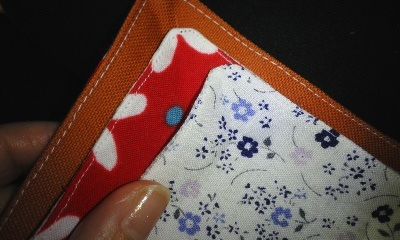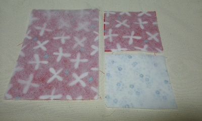 付いた柄側とまだ付けていない外側用の表布を互いに合わせ(中表)
