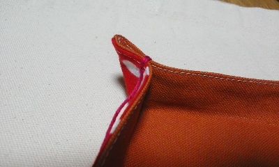 角を摘んで糸で縫い留めます(今回は刺繍糸を使用)