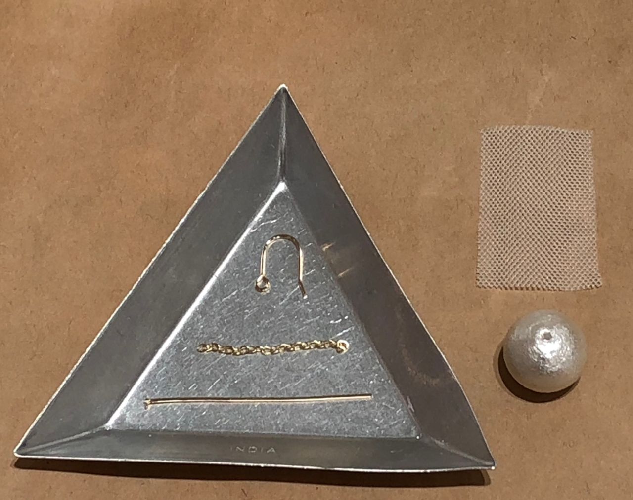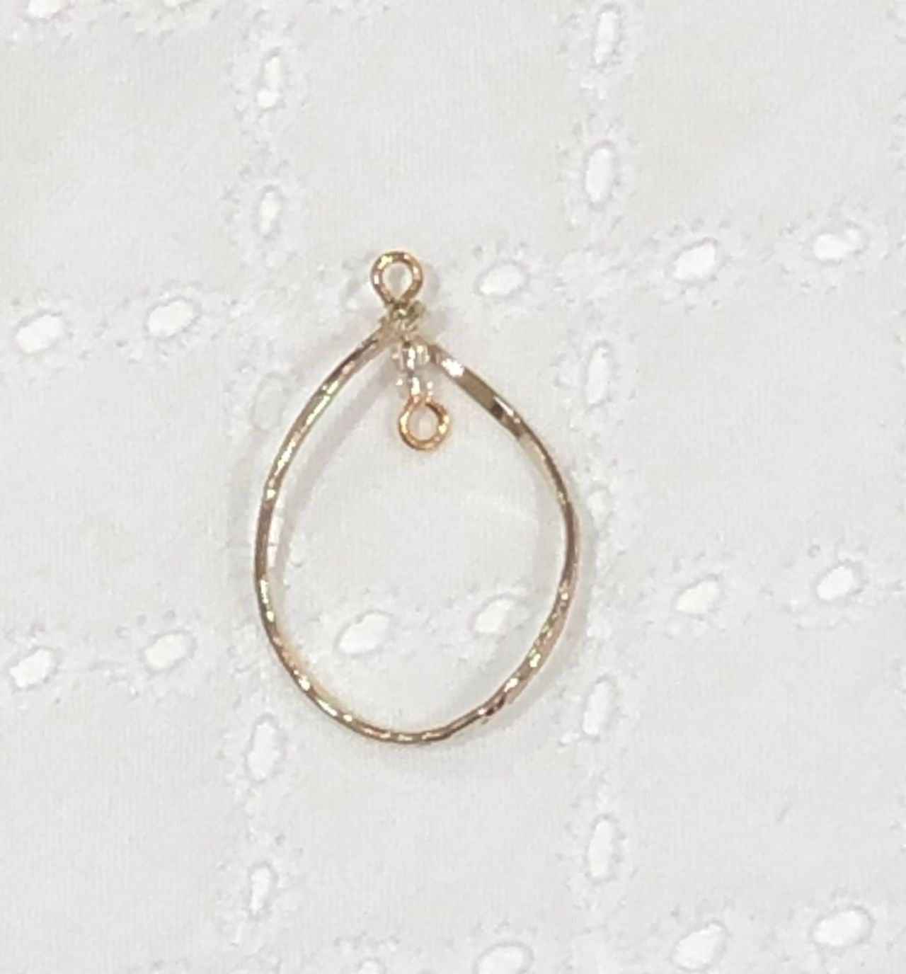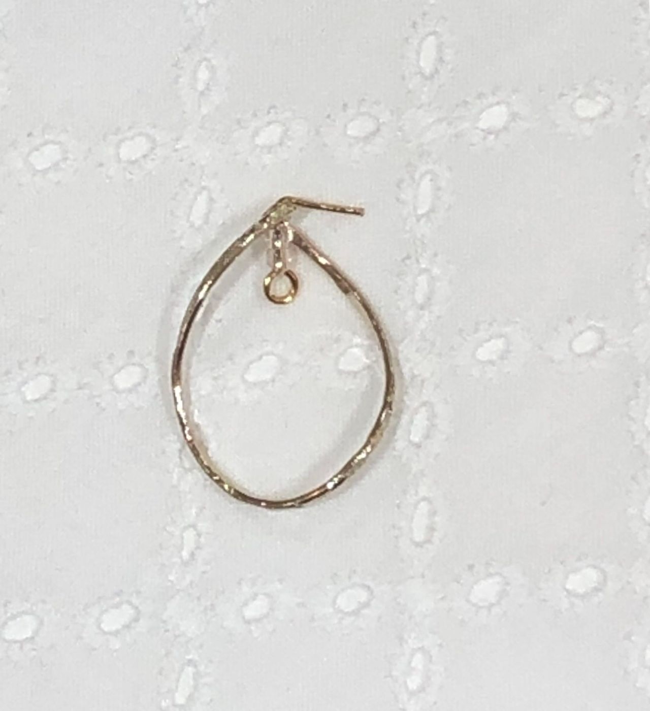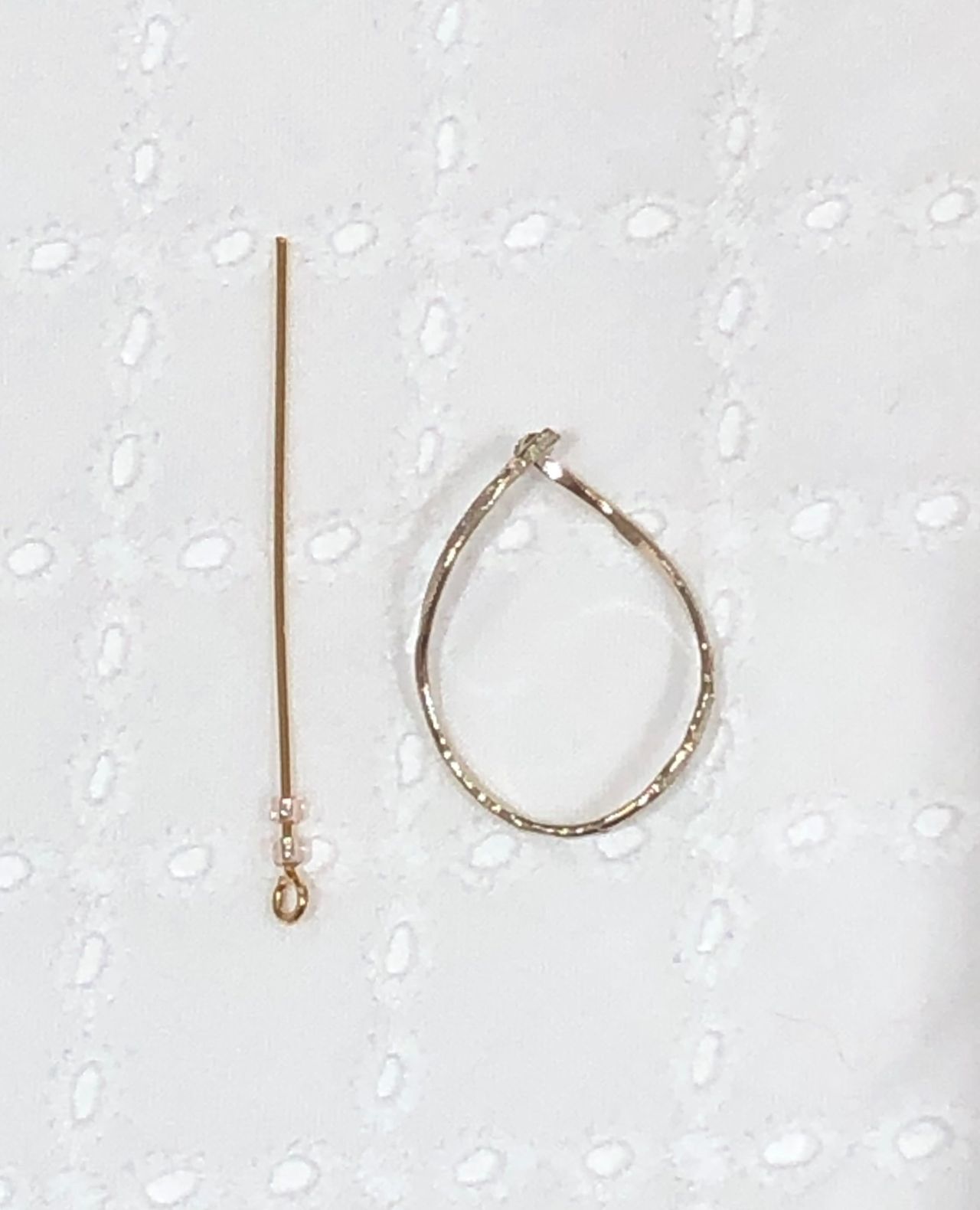 ピアスのカンを開いてチェーンをつけます