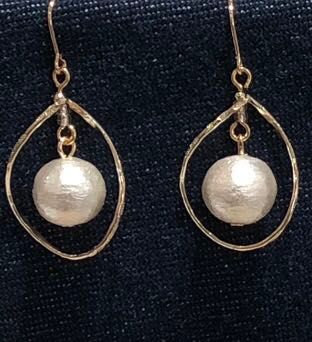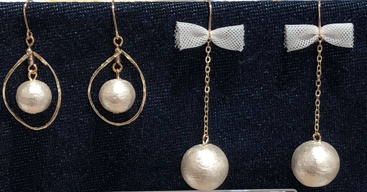 コットンパールでゆらめくピアス