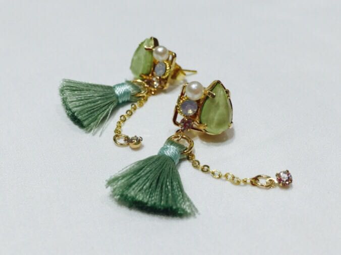 「グリーンタッセルイヤーアクセサリー」