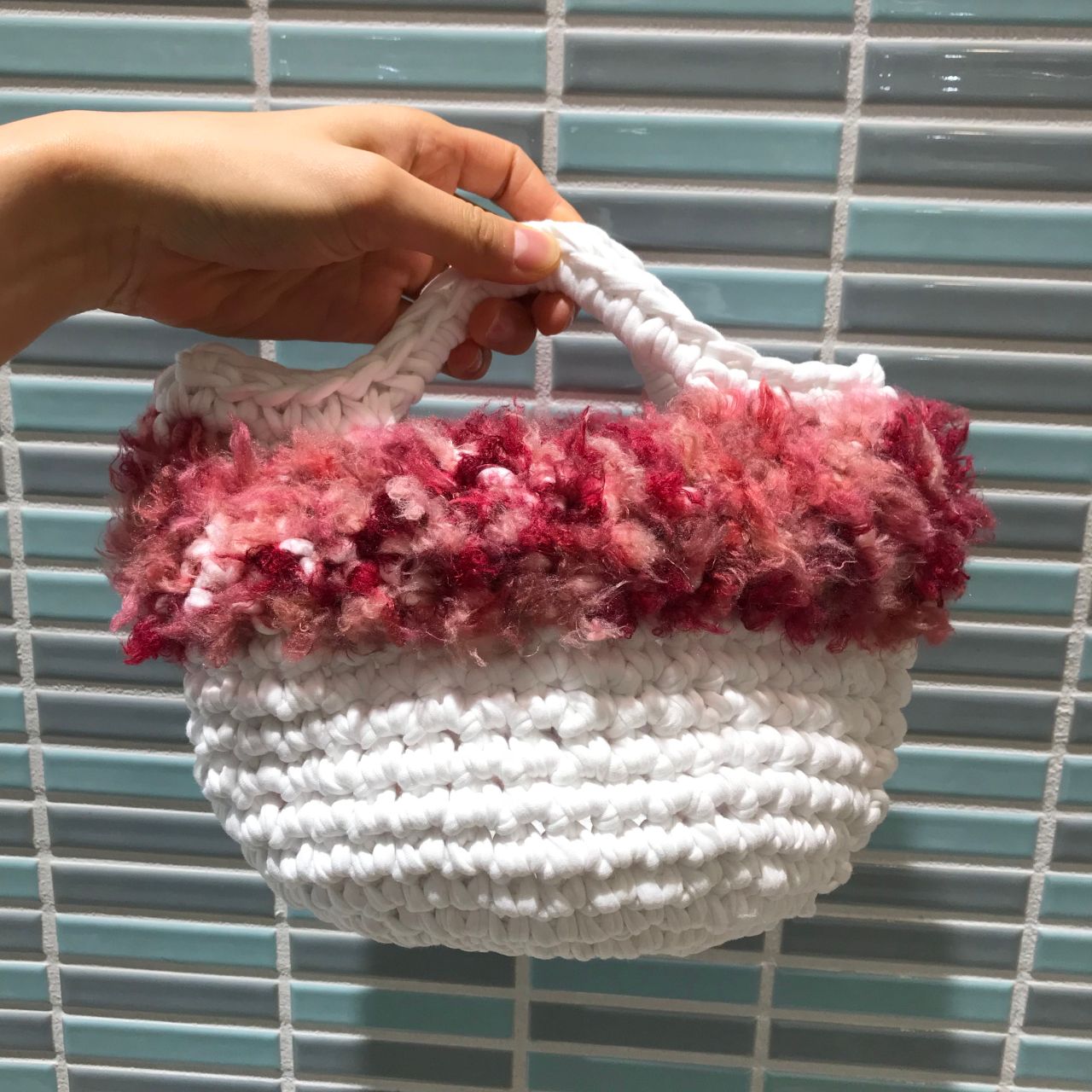 ズパゲッティとファーのバッグのように