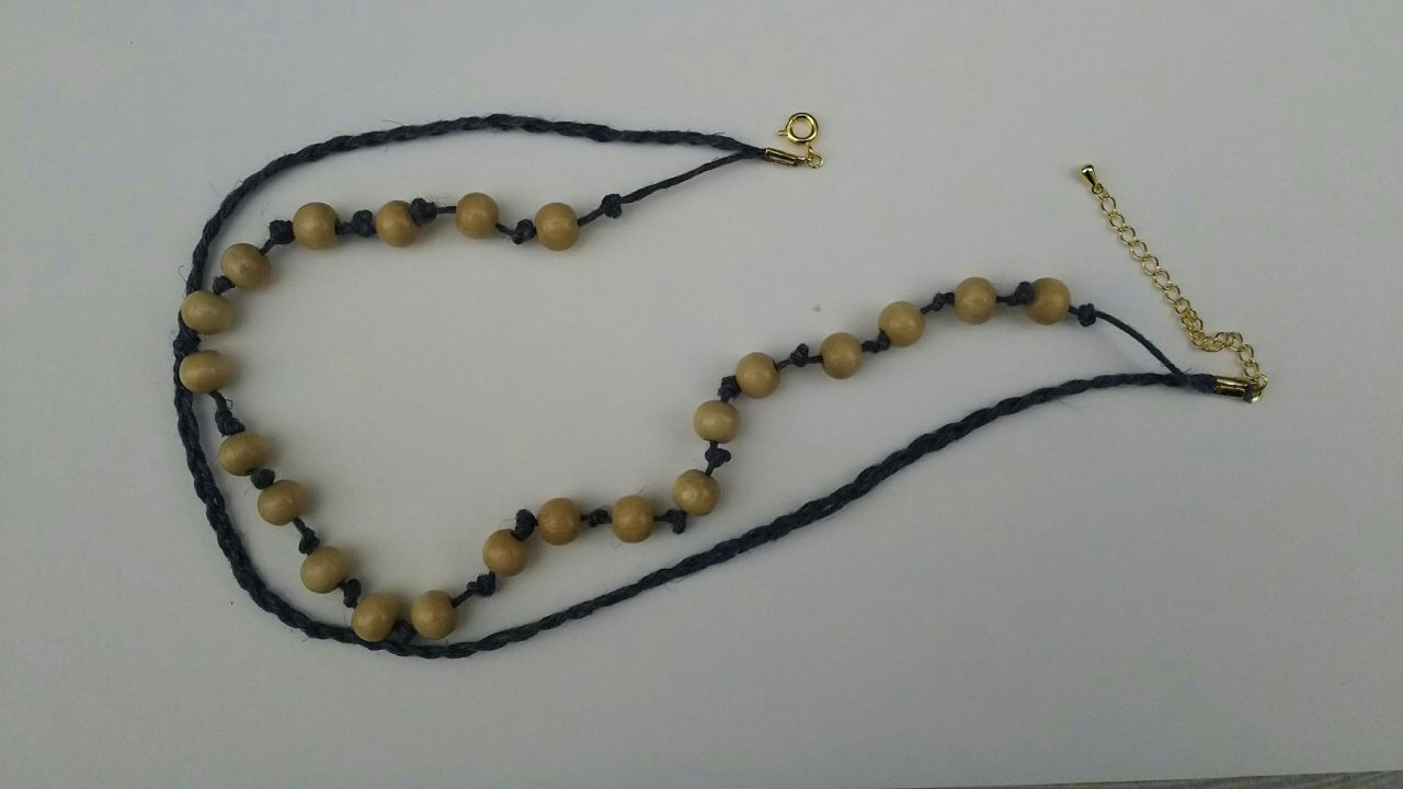 こちらはヘンプにウッドビーズを組み合わせて作ってます