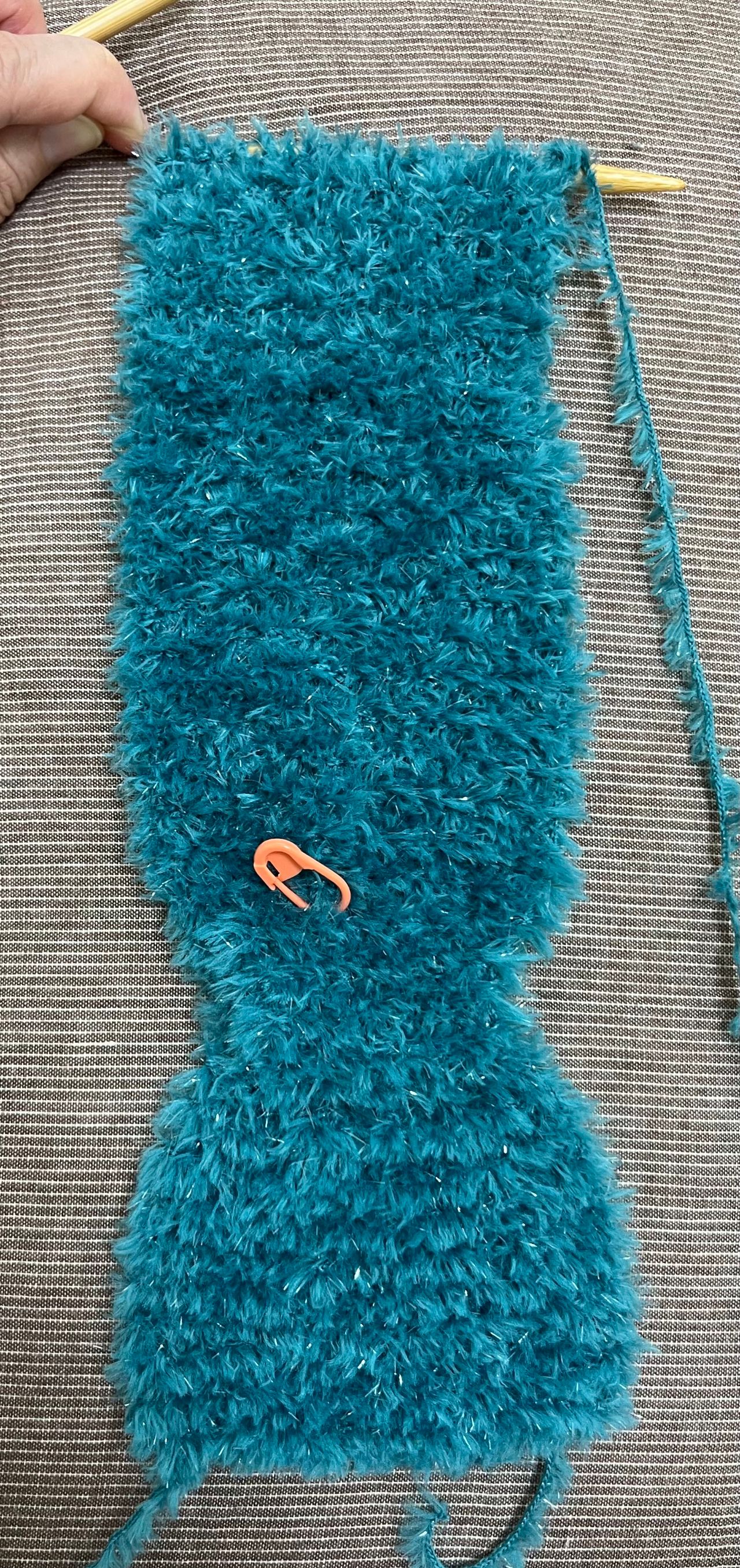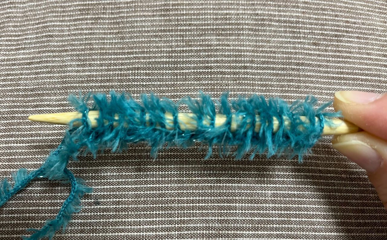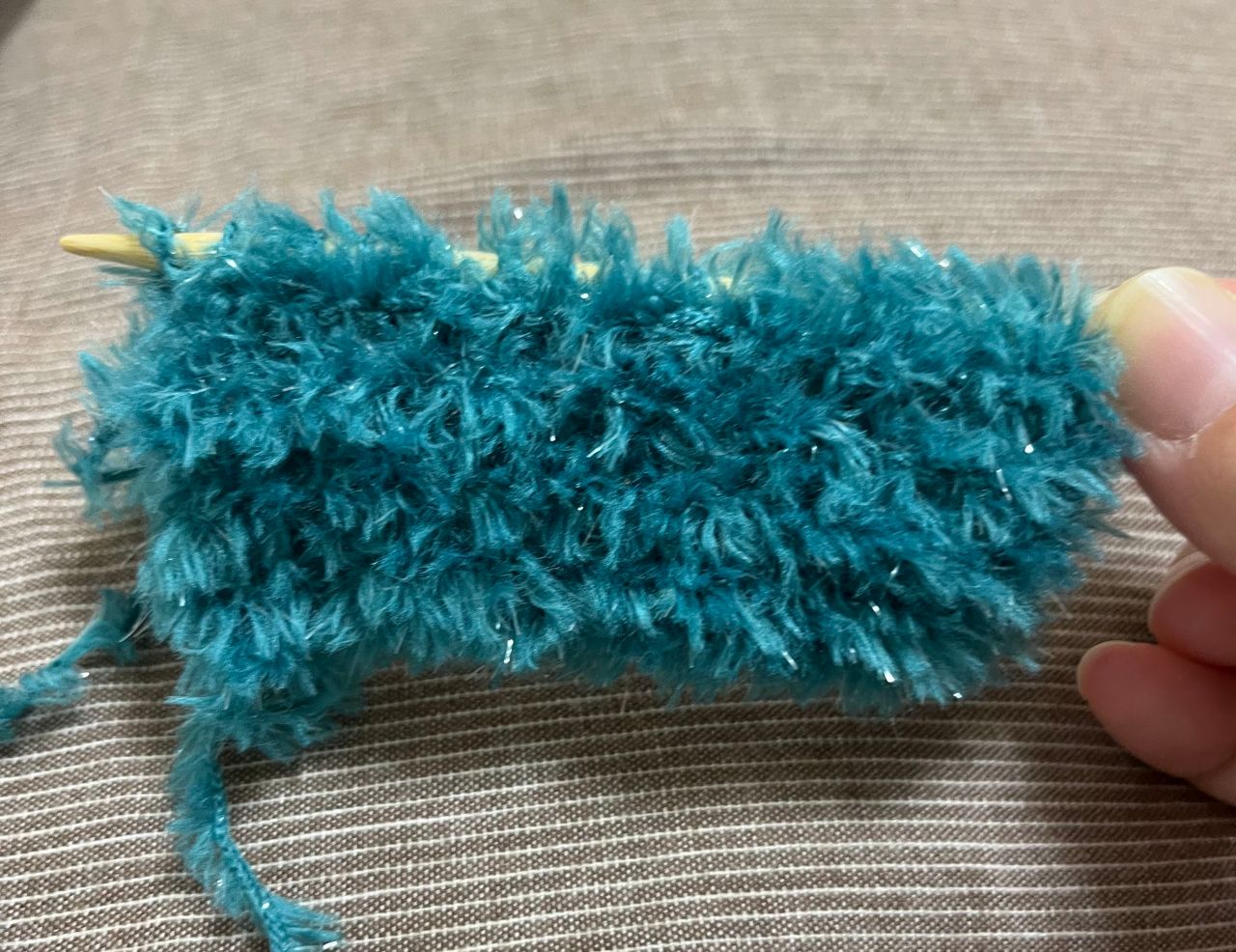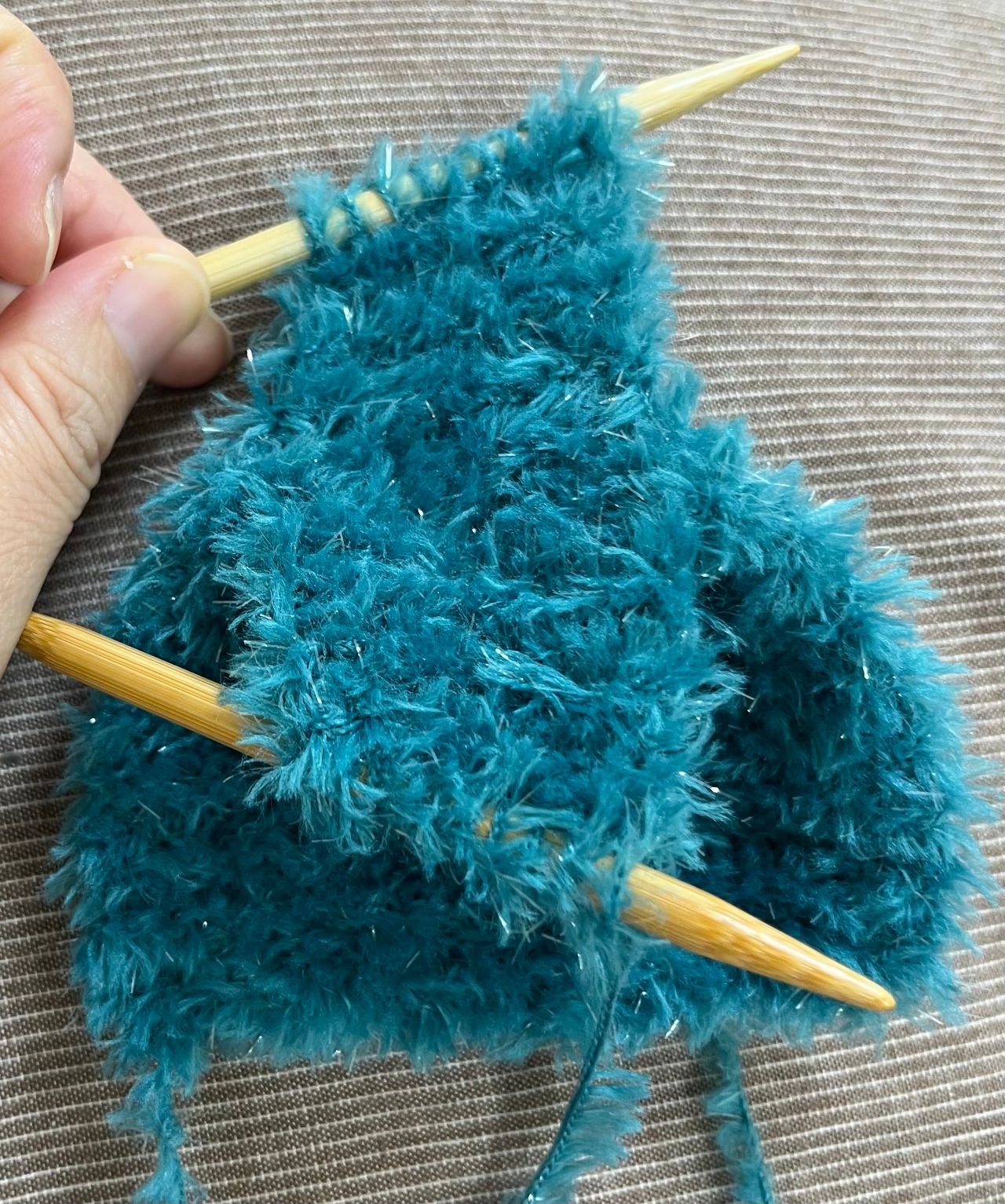 メリヤス編みでまっすぐ編み、脇をはぎます。