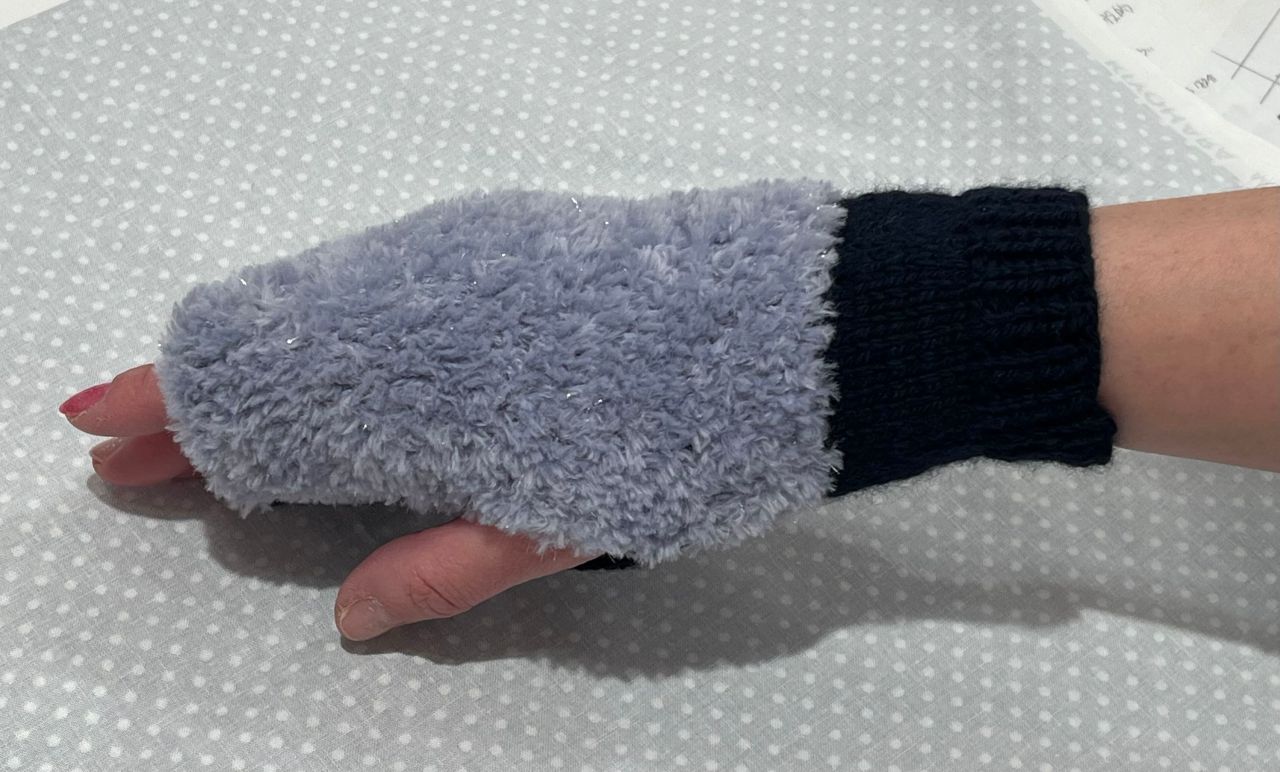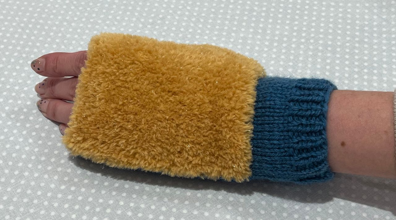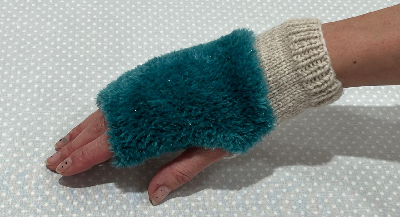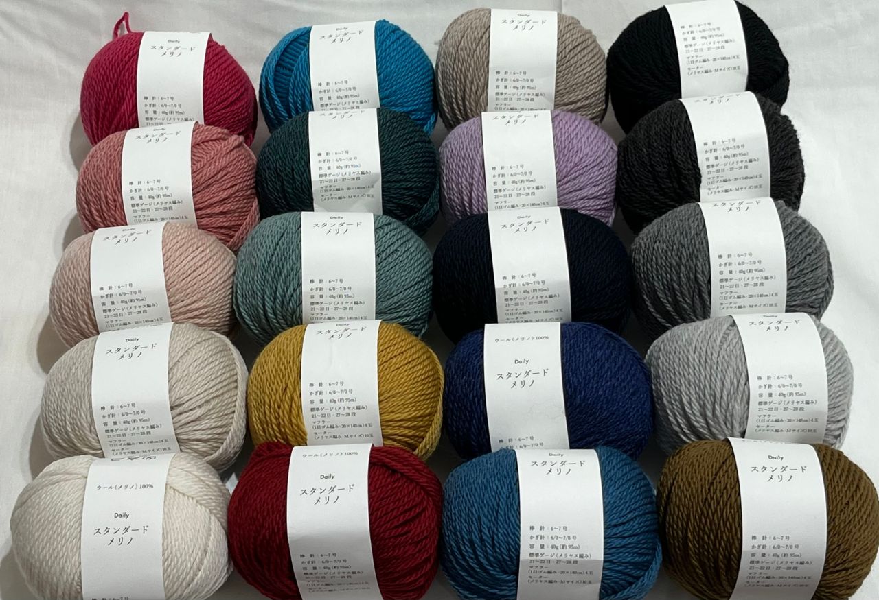 こちらのハンドウォーマーはオカダヤオリジナルのDailyスタンダードメリノとコラボしてみました。