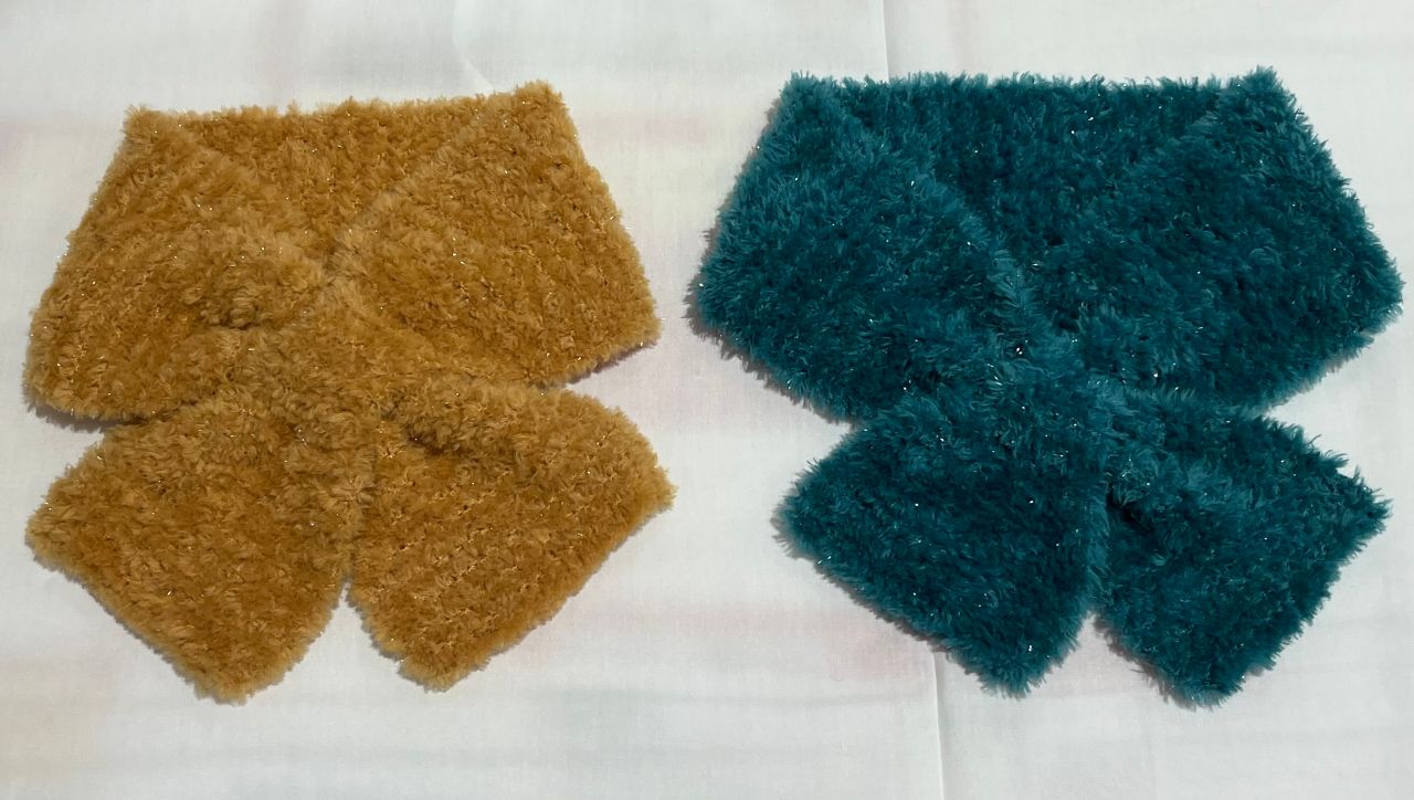 同じレシピを使い針の号数と段数で2つのサイズが楽しめます。