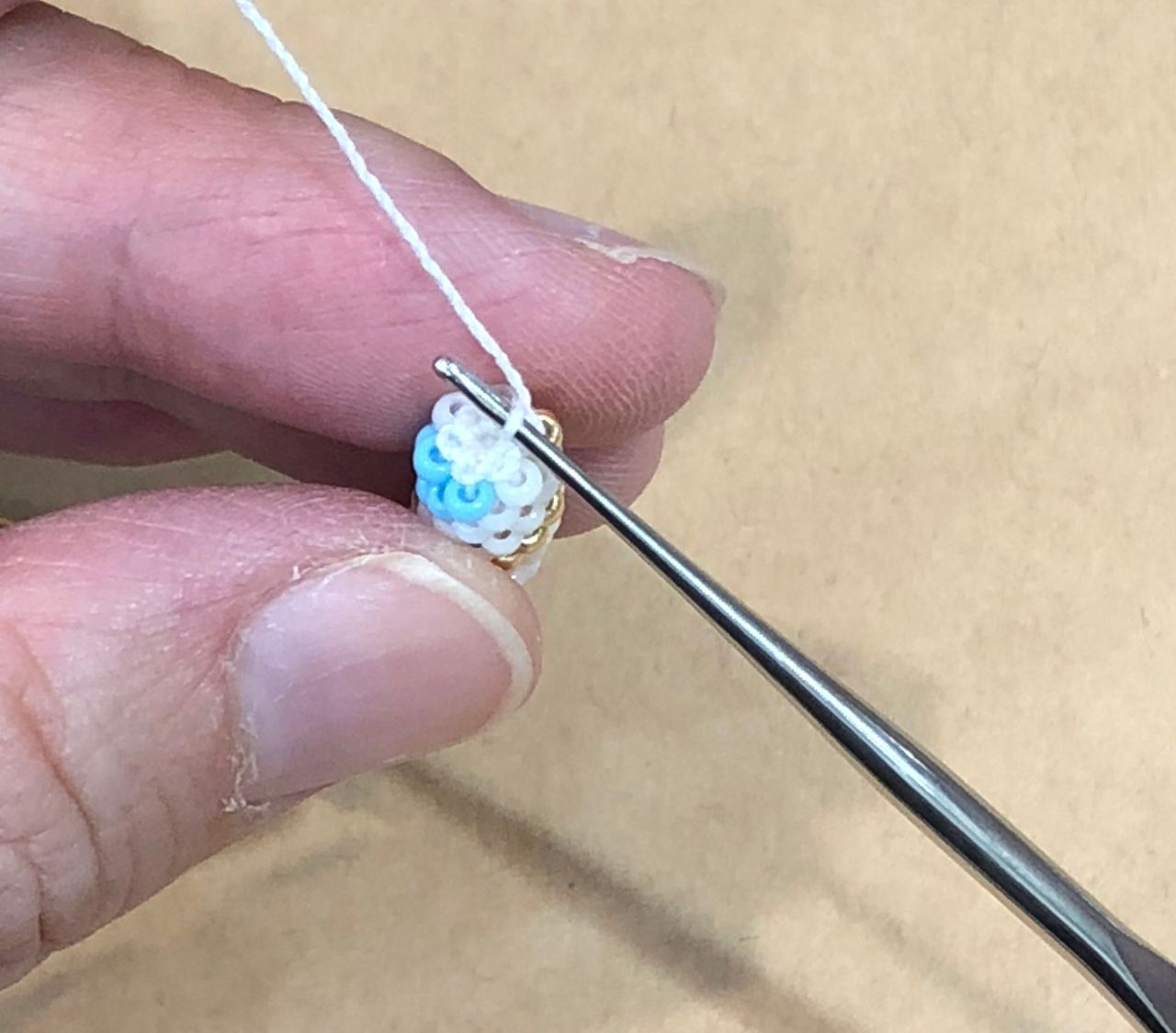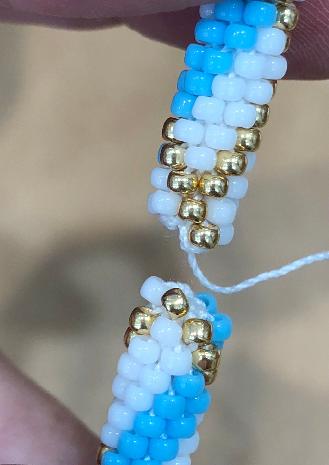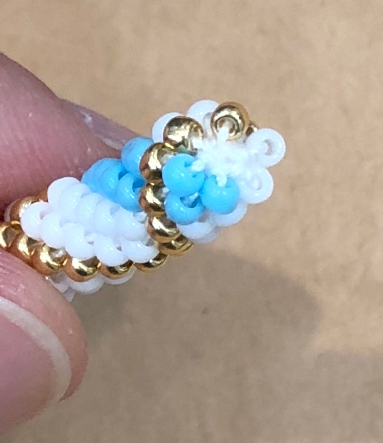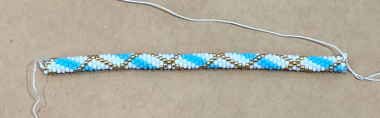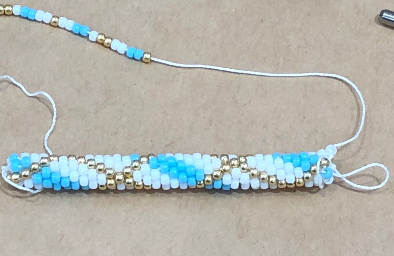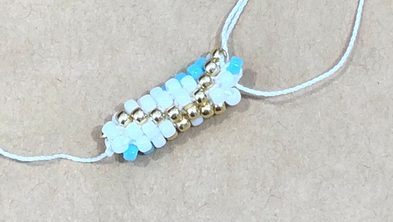 編んでる途中でビーズの間違えがあると、糸を切って足りないビーズを入れなくてはいけないです、、模様ごとチェックをしましょう!大切です‼︎