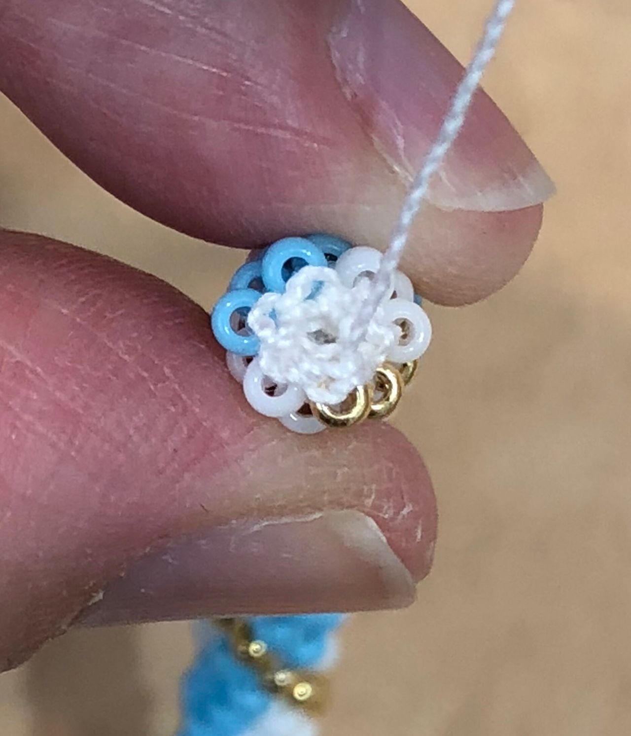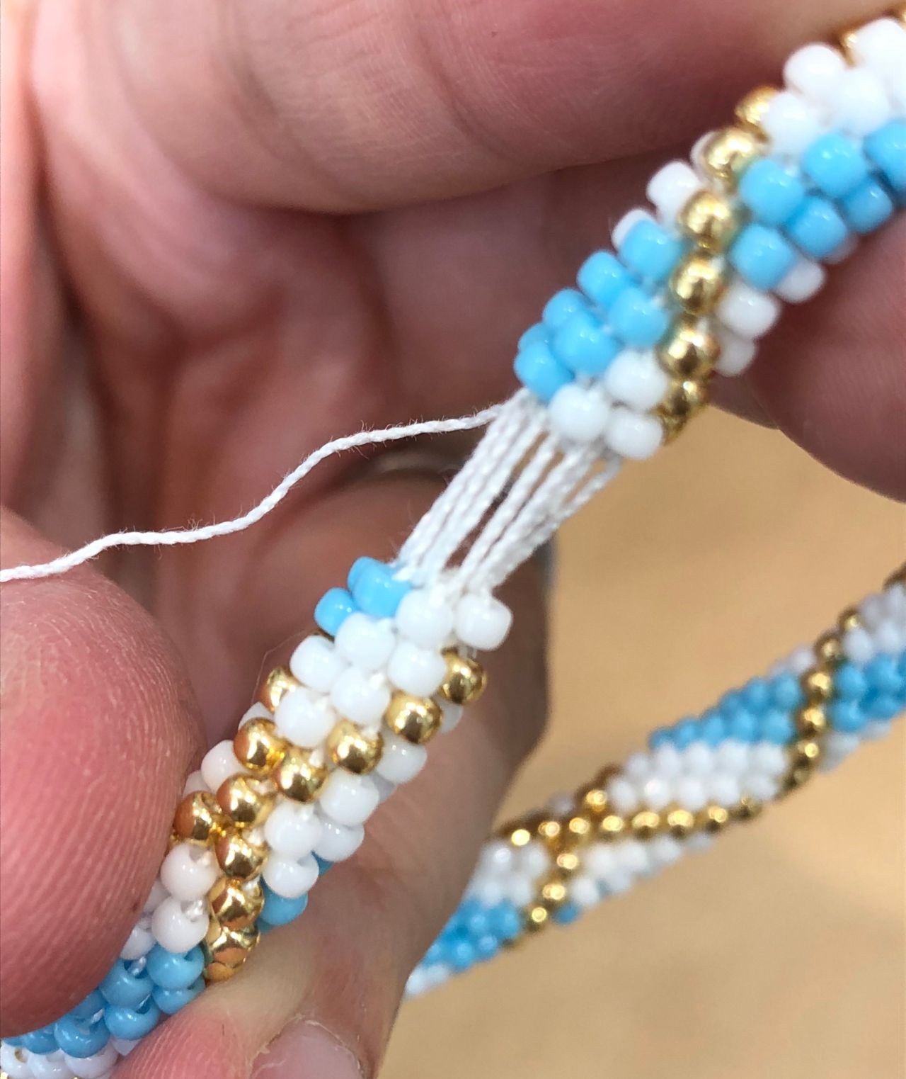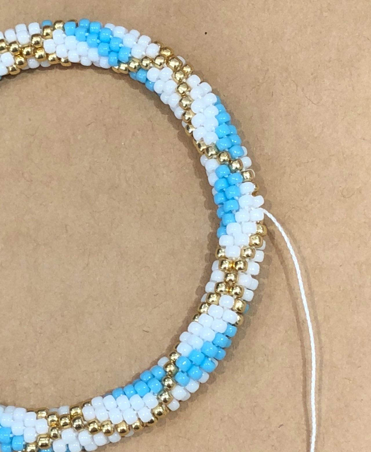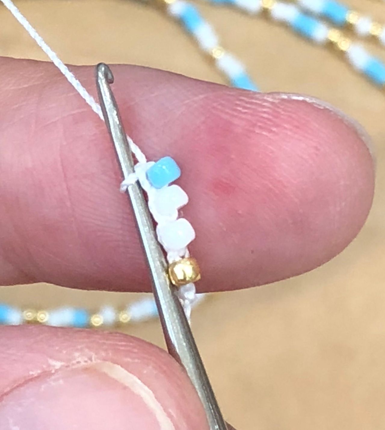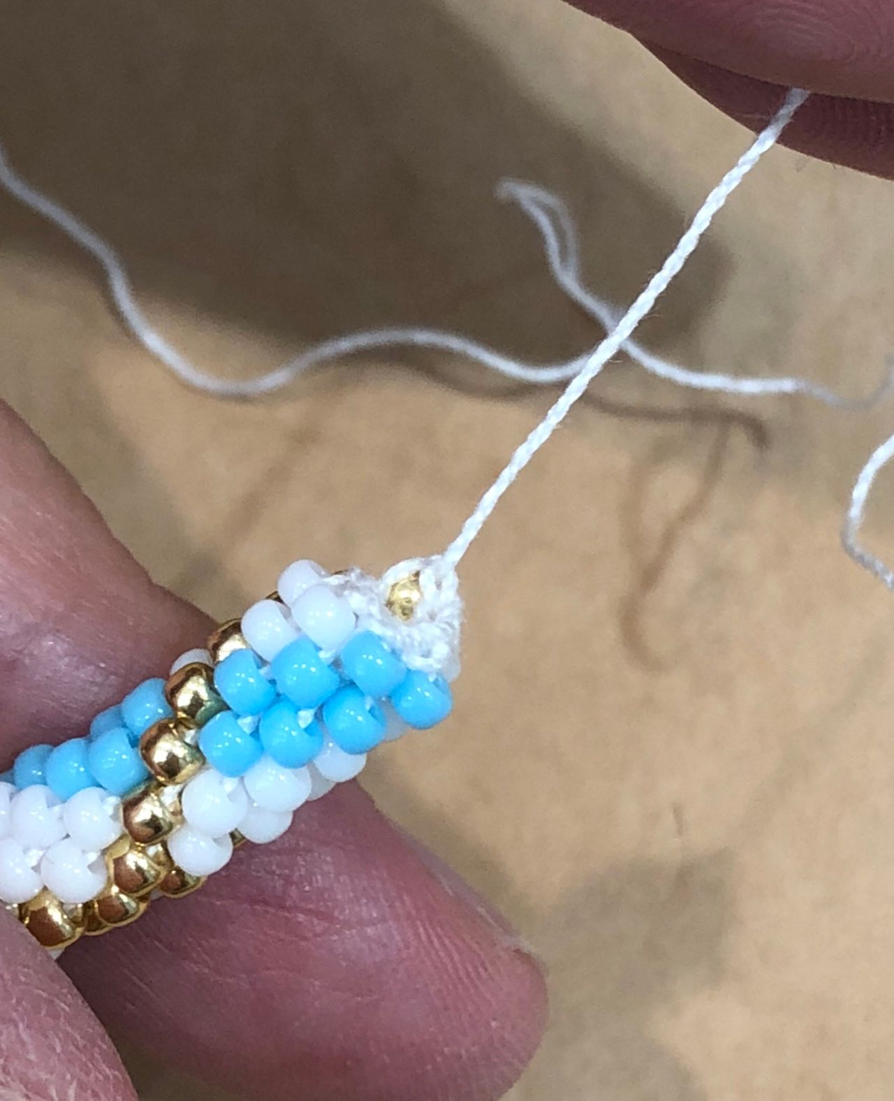 編んでる途中でビーズの間違えがあると、糸を切って足りないビーズを入れなくてはいけないです、、模様ごとチェックをしましょう!大切です‼︎