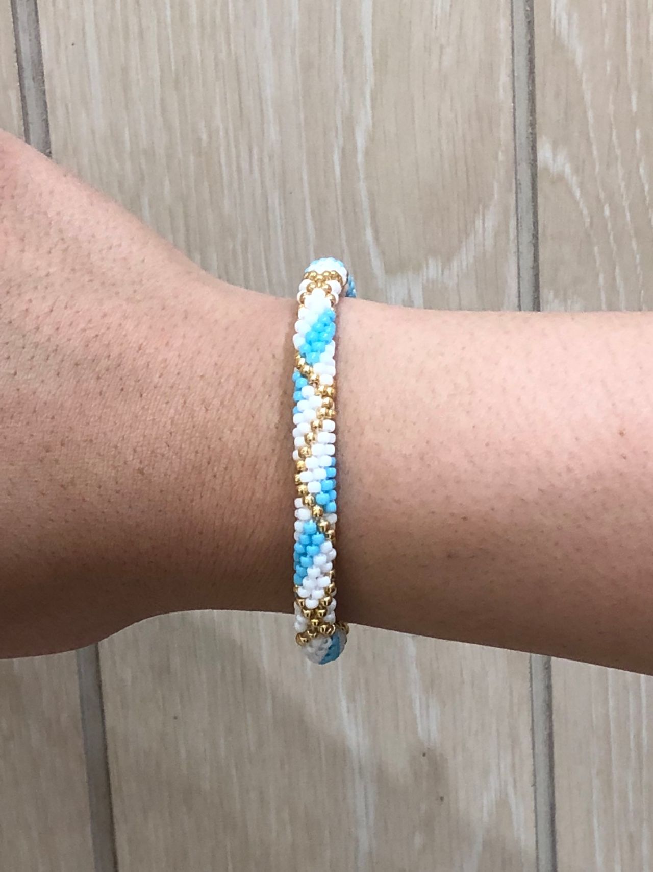 丸小ビーズ 金色:¥300+税 水色・白色:¥130+税(金色:240個 水色:200個 白色:400個使用)