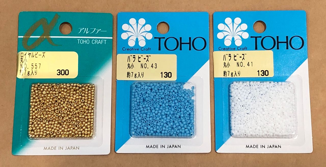 丸小ビーズ 金色:¥300+税 水色・白色:¥130+税