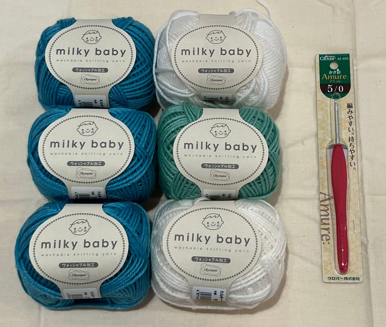 ベビー、キッズ向きのウォッシャブル毛糸の定番糸ですが、大人の敏感肌の方にも超オススメの毛糸、オリムパスのミルキーベビー 1玉¥638(税込)と