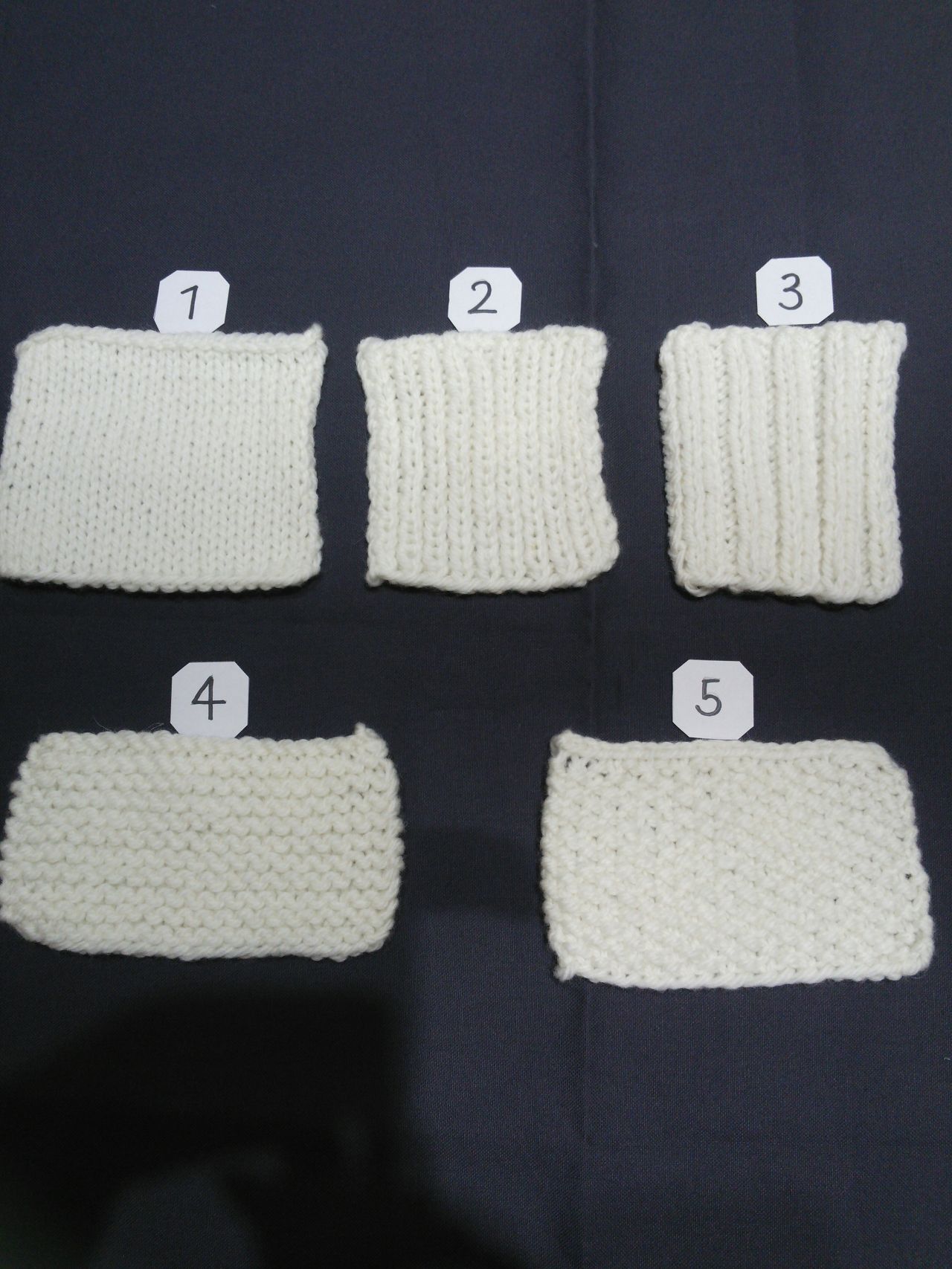表編みと裏編みの交互になるのでメリヤス編みと同じ目数でも幅が縮まり、たてに長くなります。