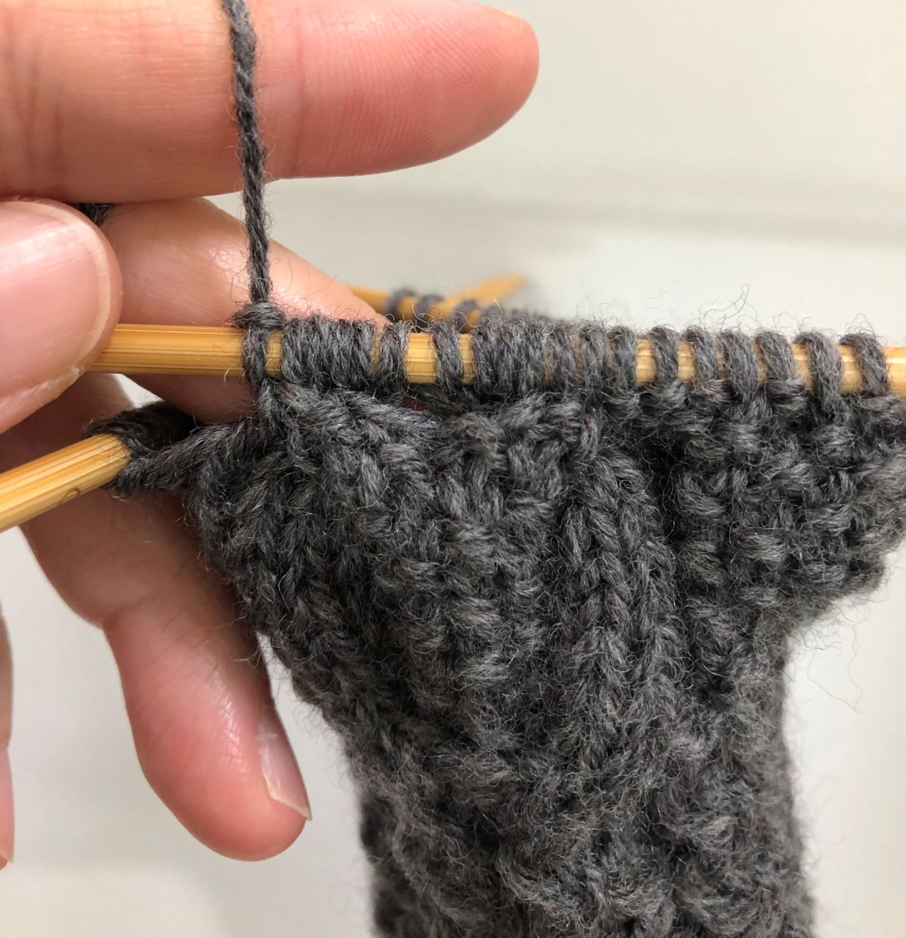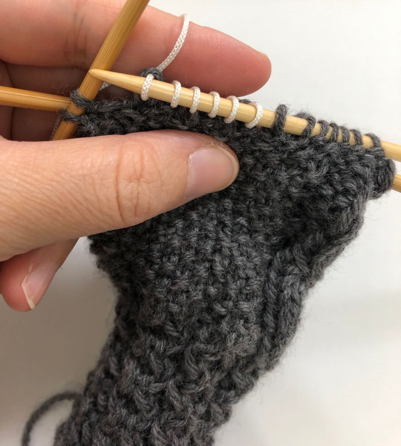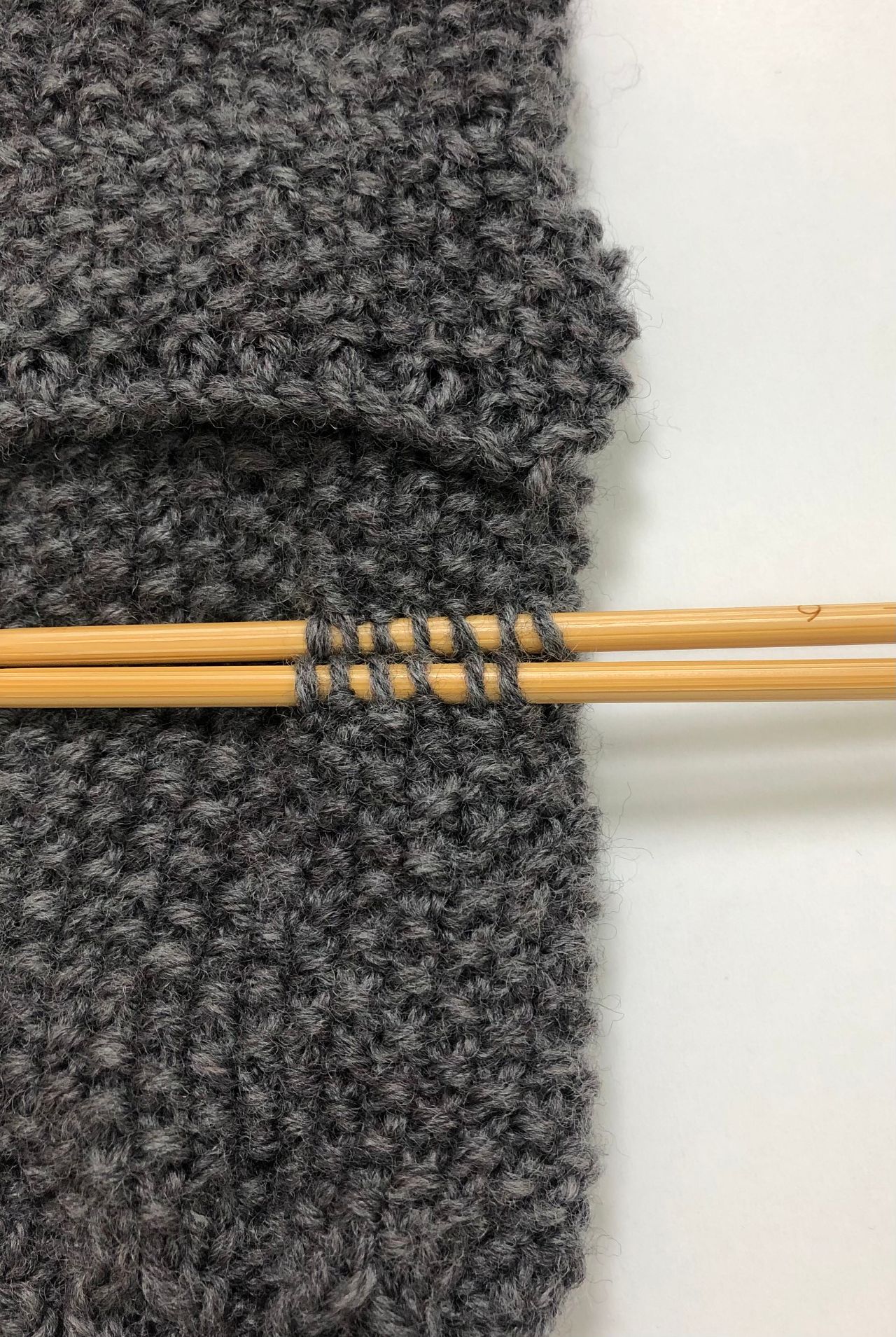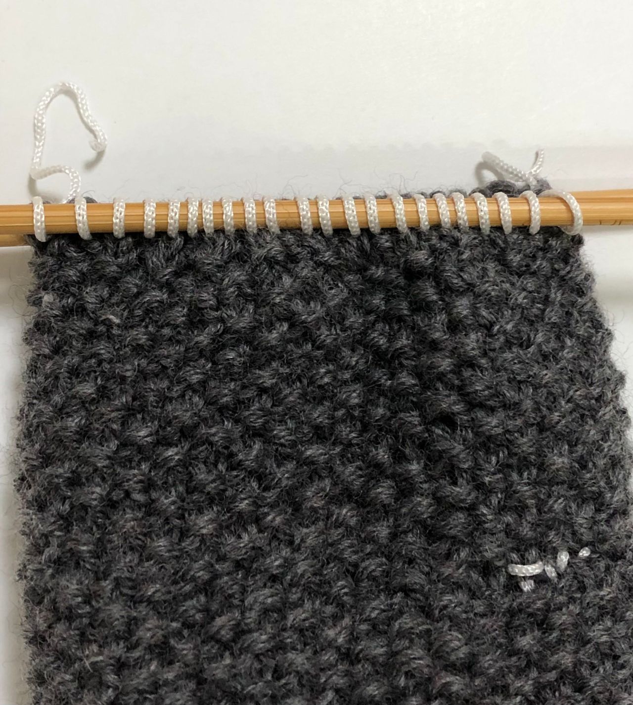 輪で編み進めるので、四角形にします。(4本針の時は三角形)