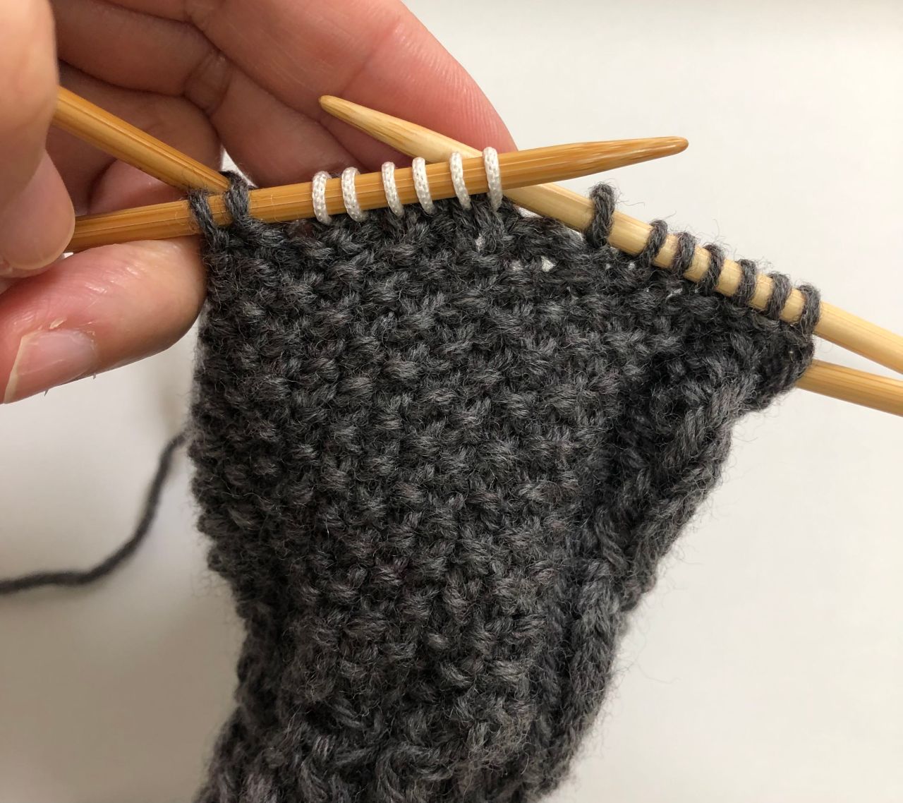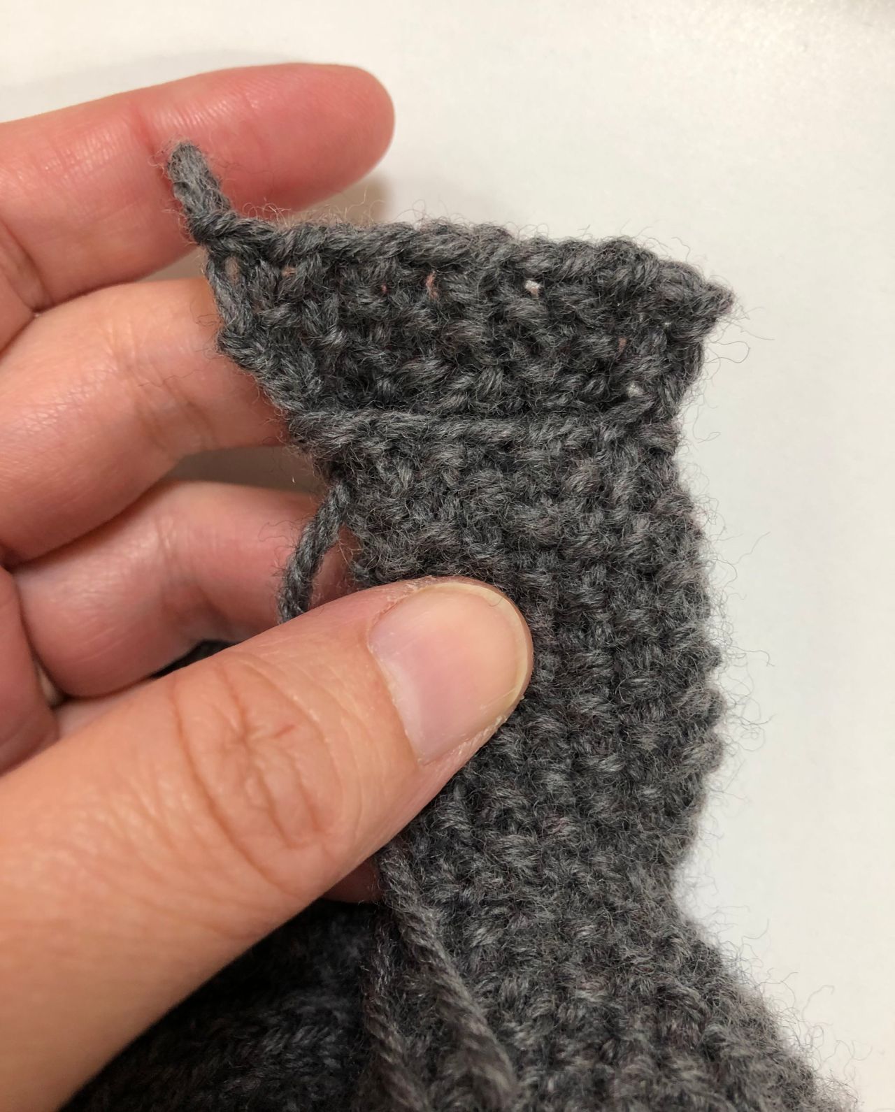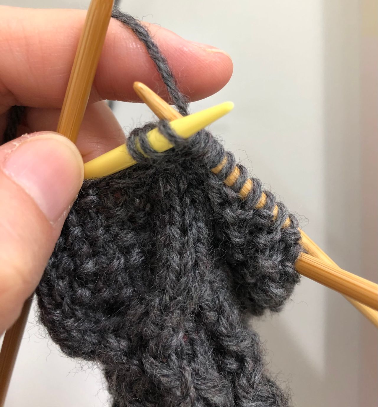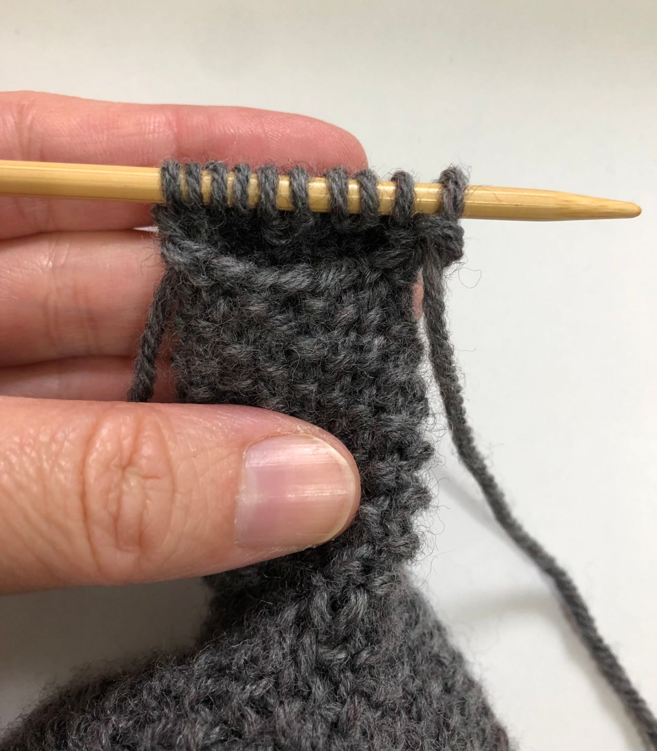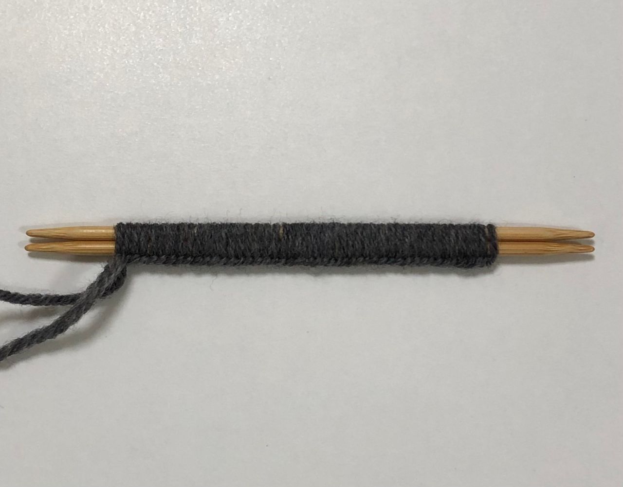輪で編み進めるので、四角形にします。(4本針の時は三角形)