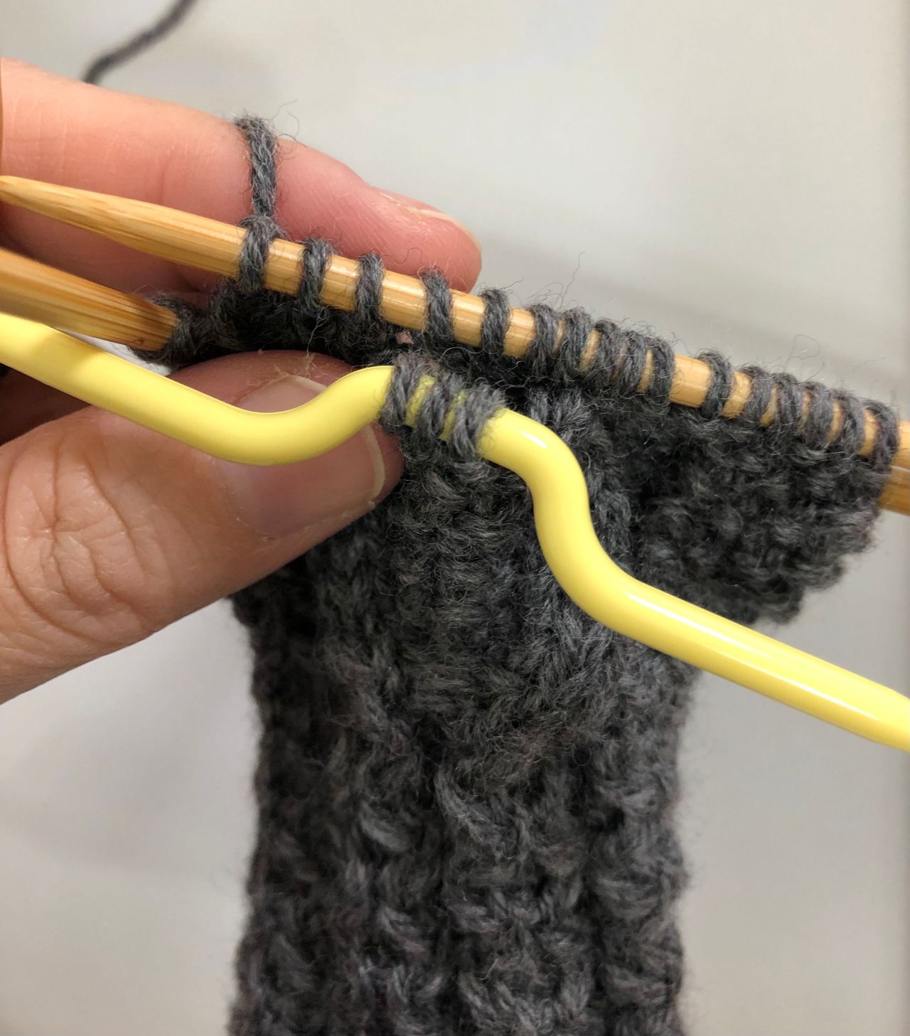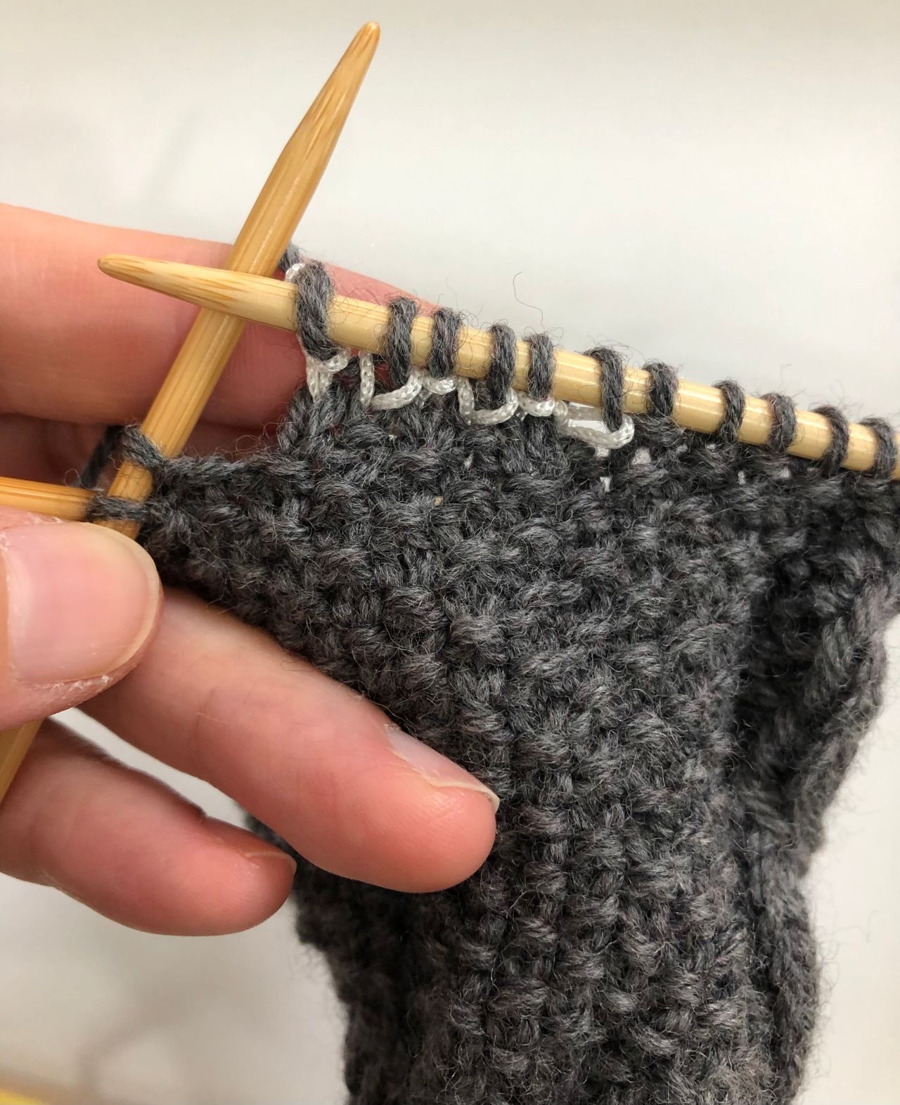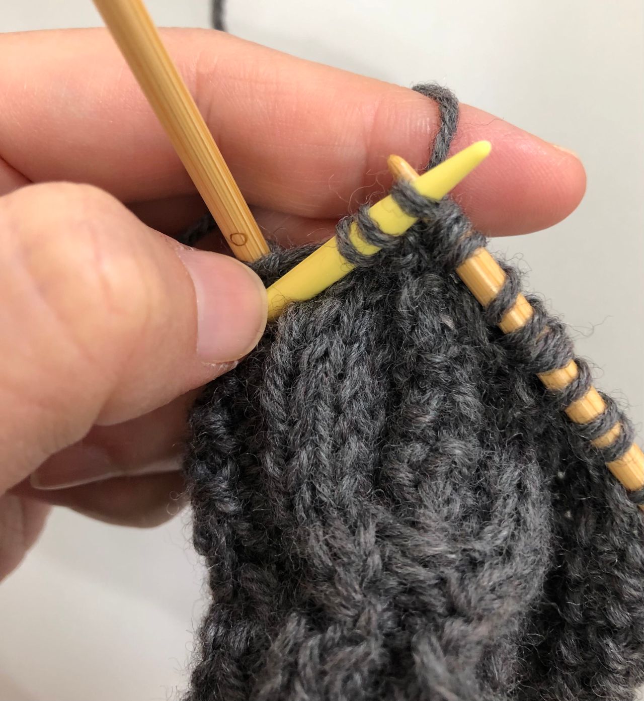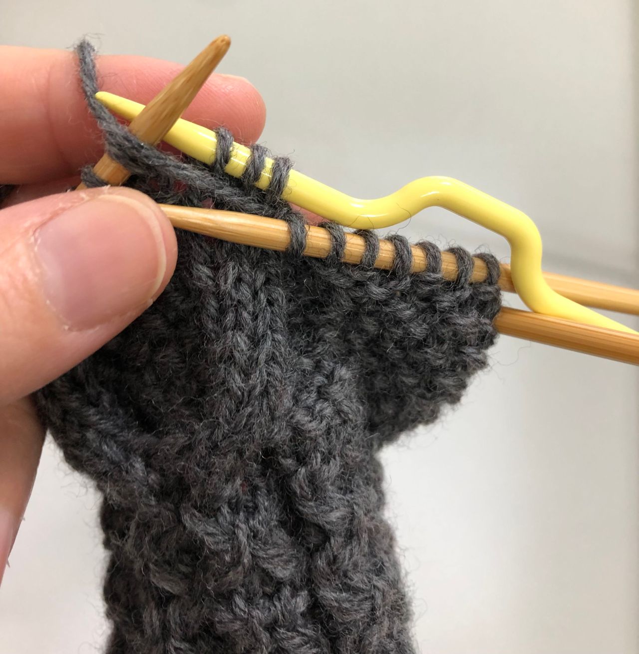 輪で編み進めるので、四角形にします。(4本針の時は三角形)