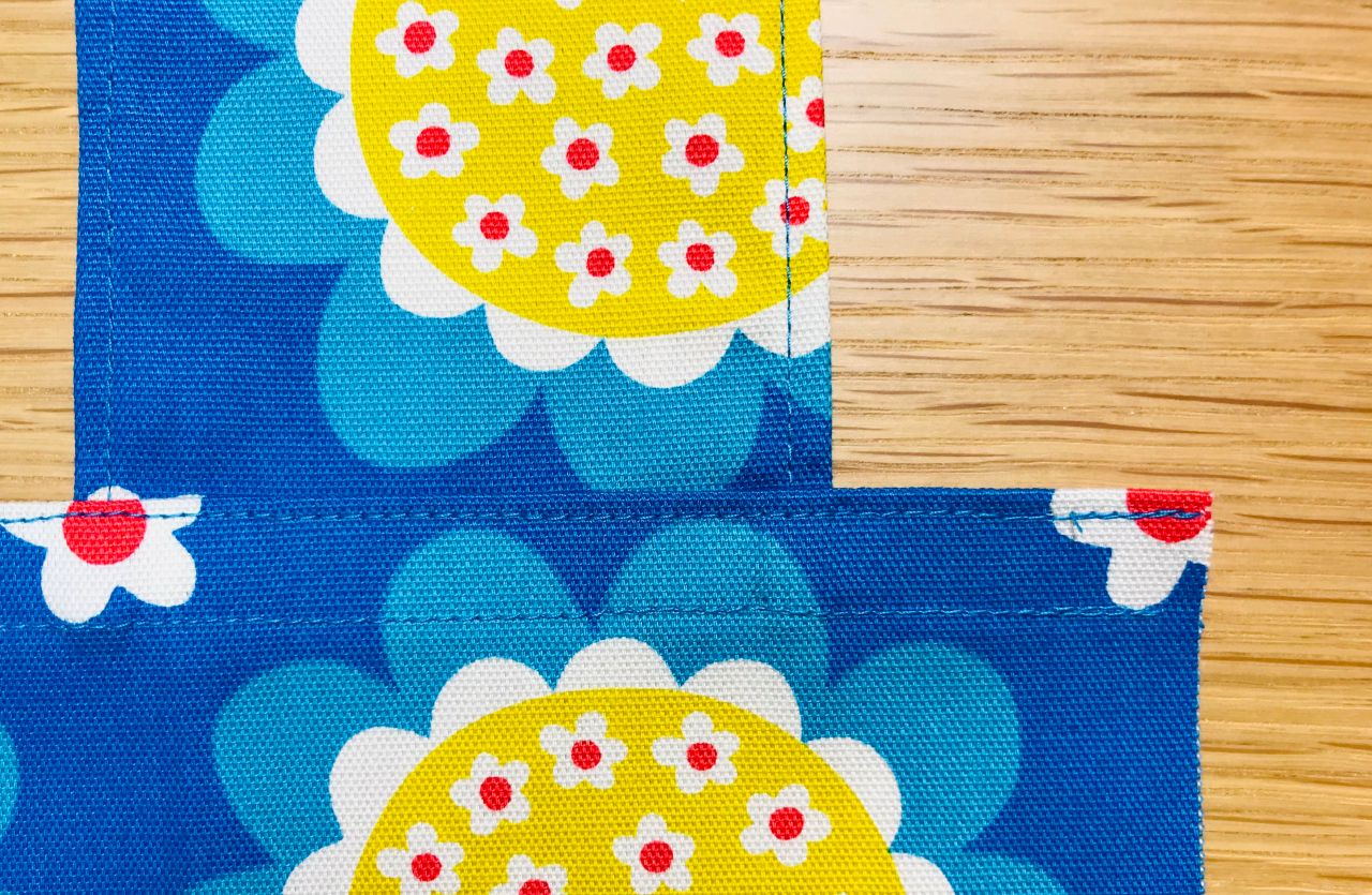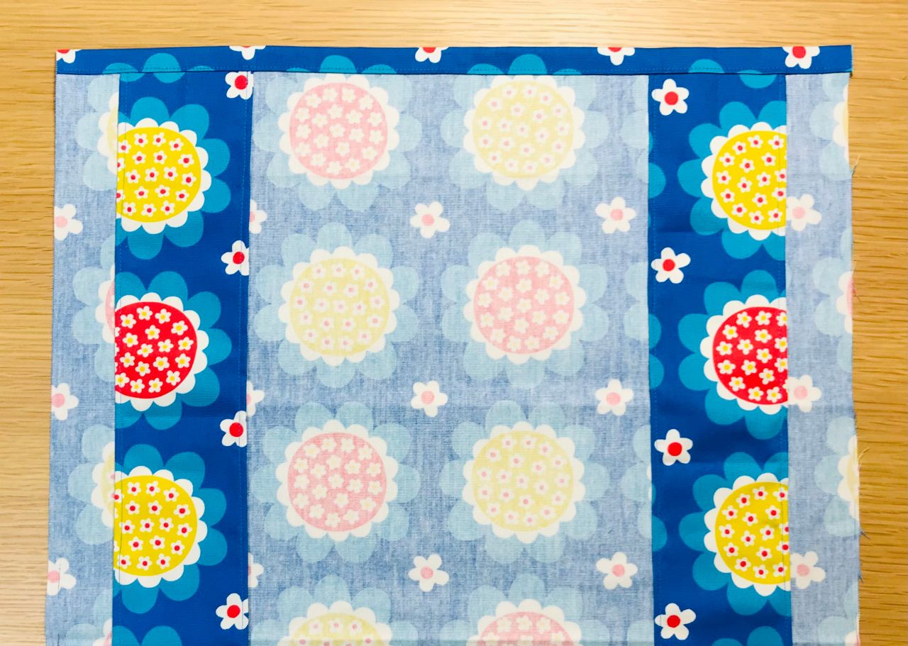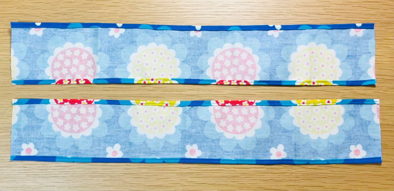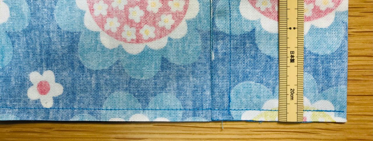 6. 裏返し両端1cmの位置を縫います。