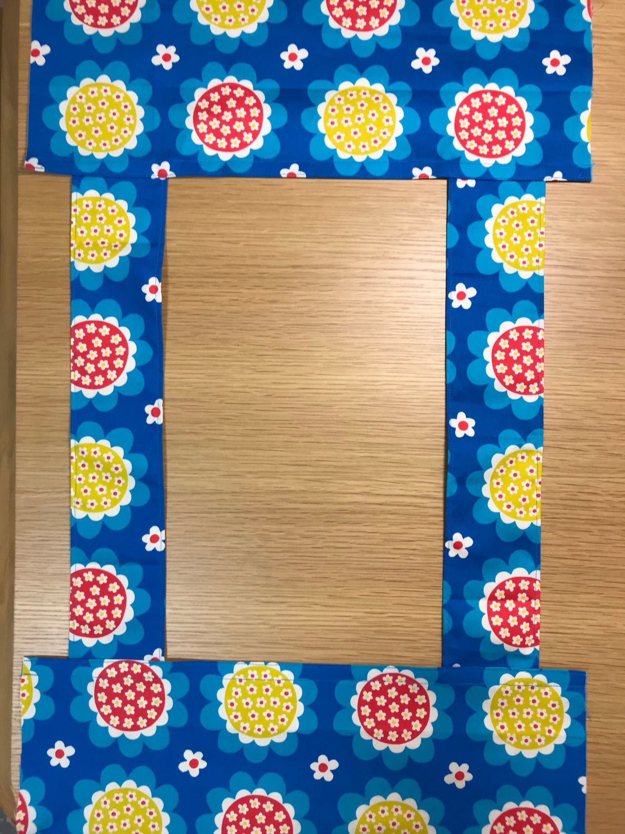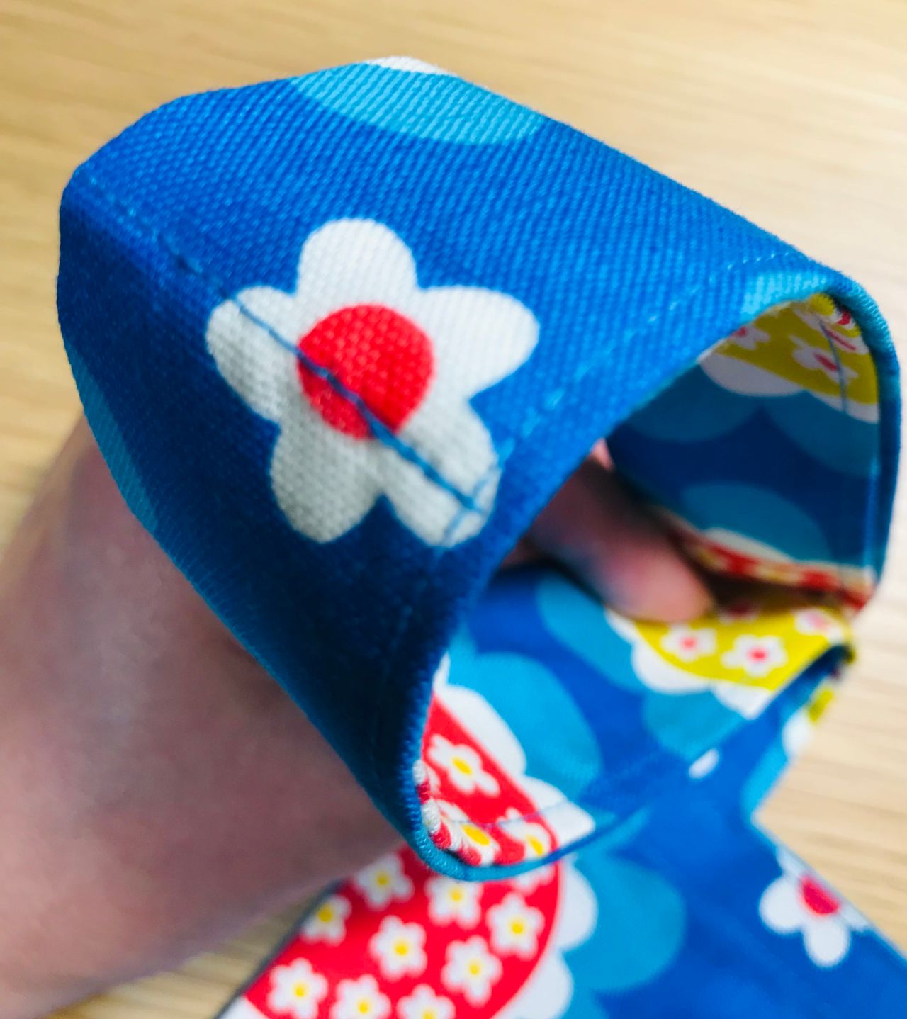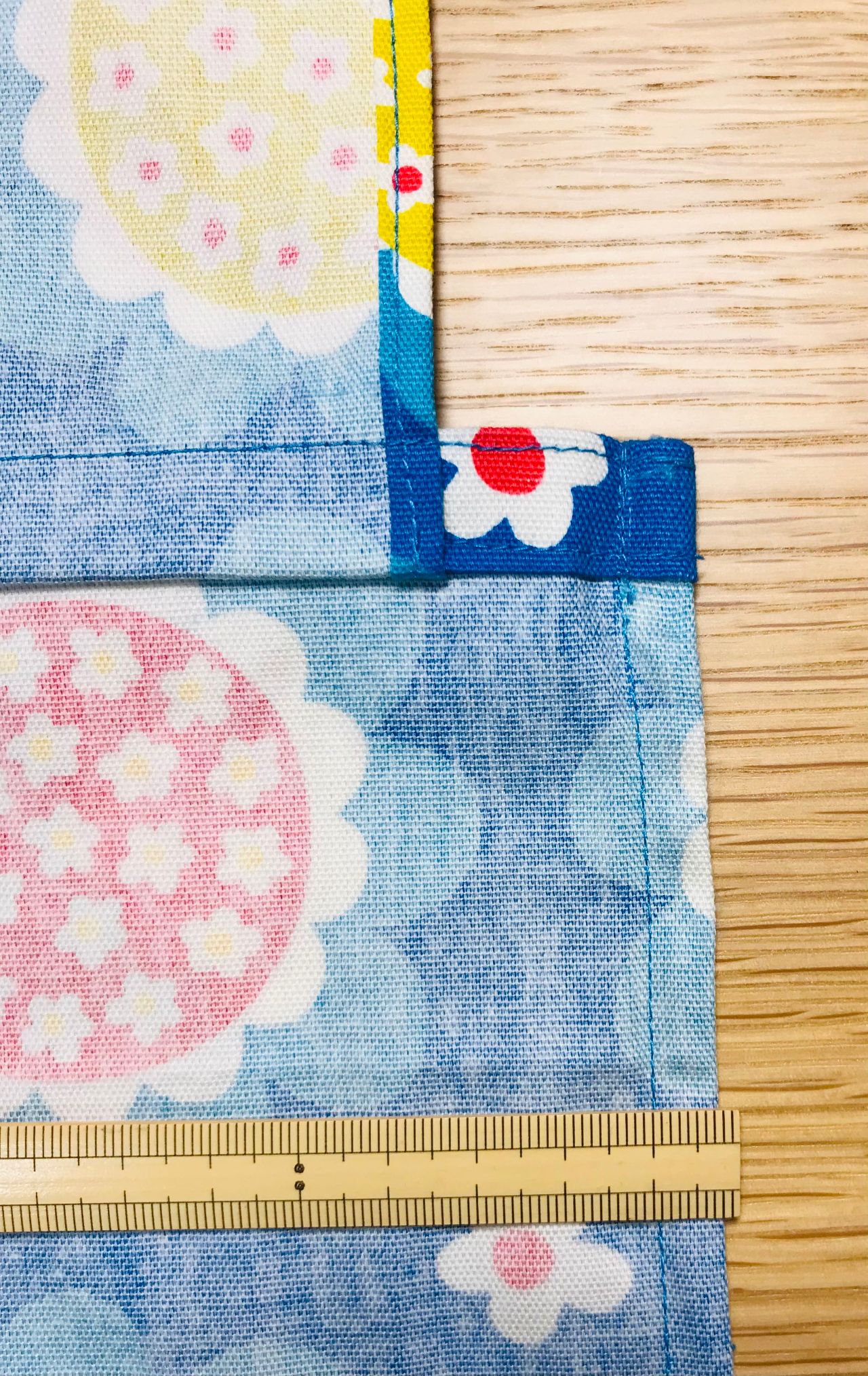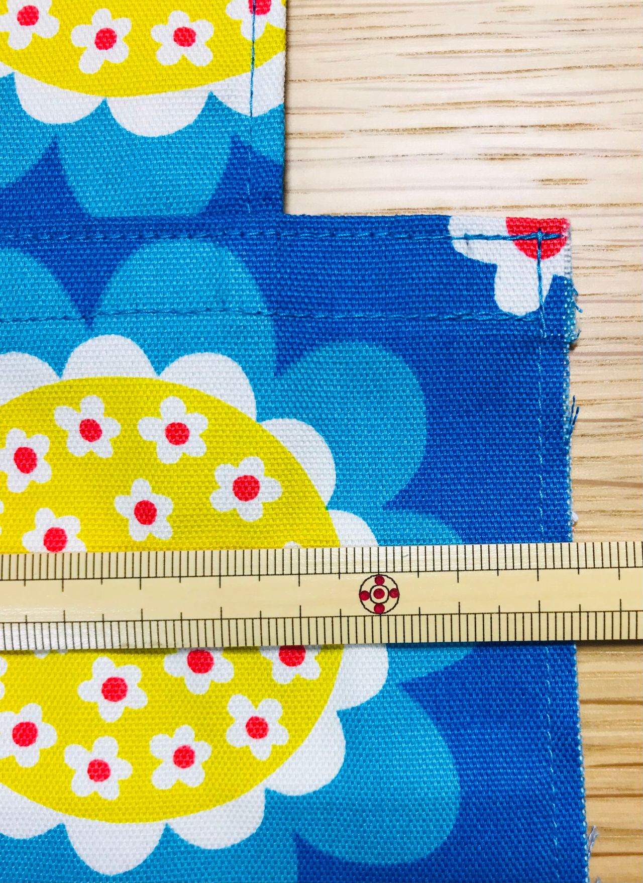 6. 裏返し両端1cmの位置を縫います。