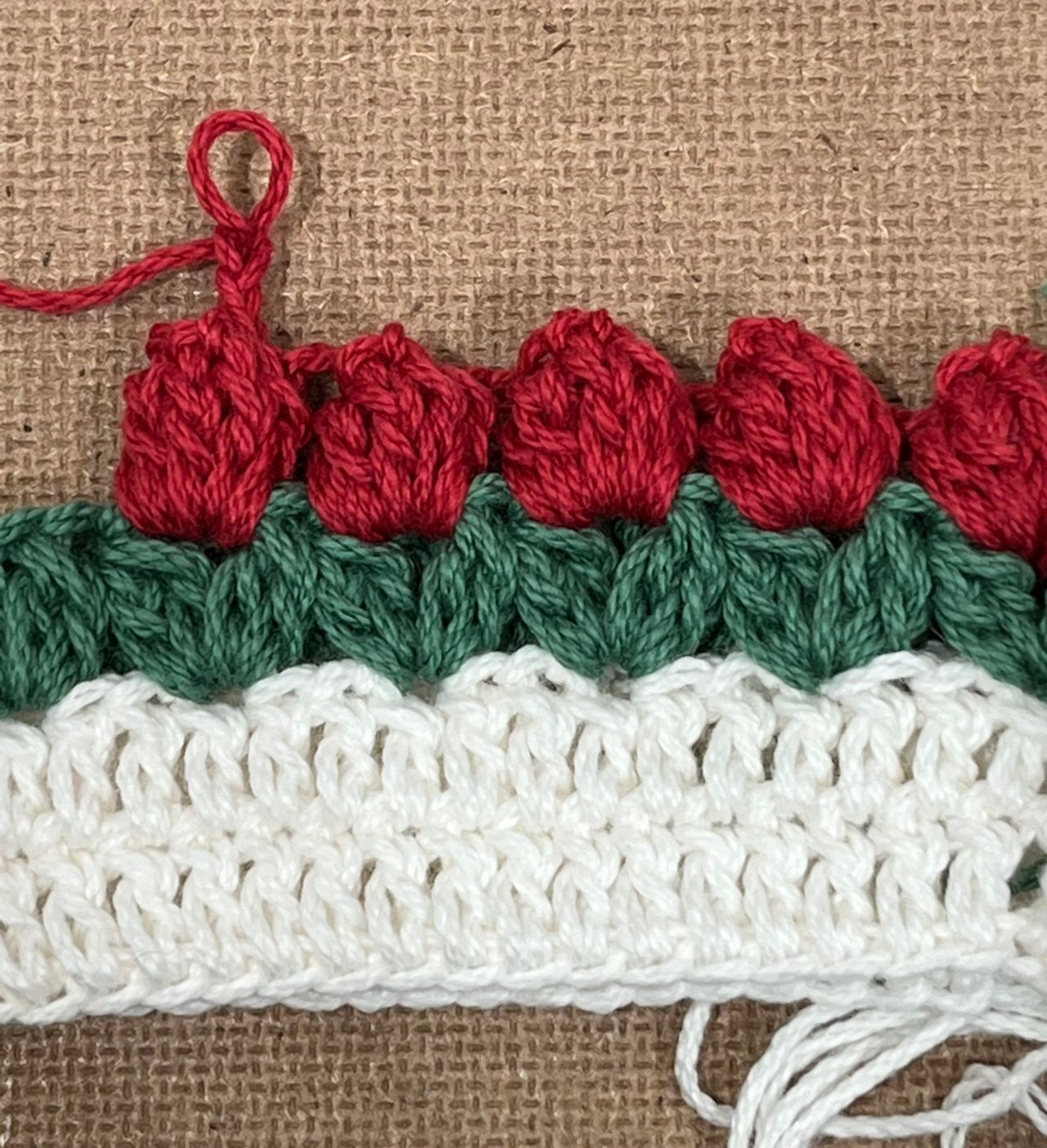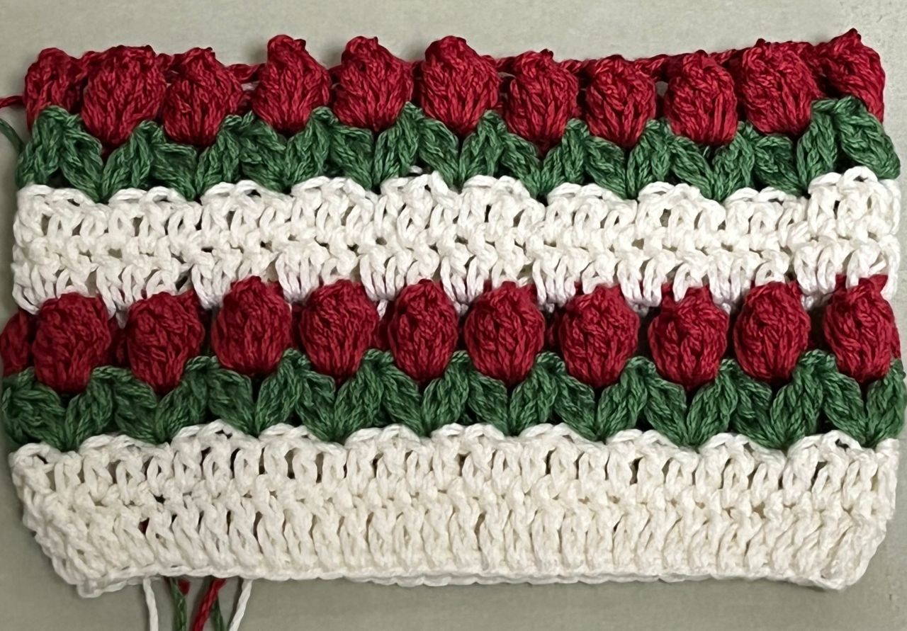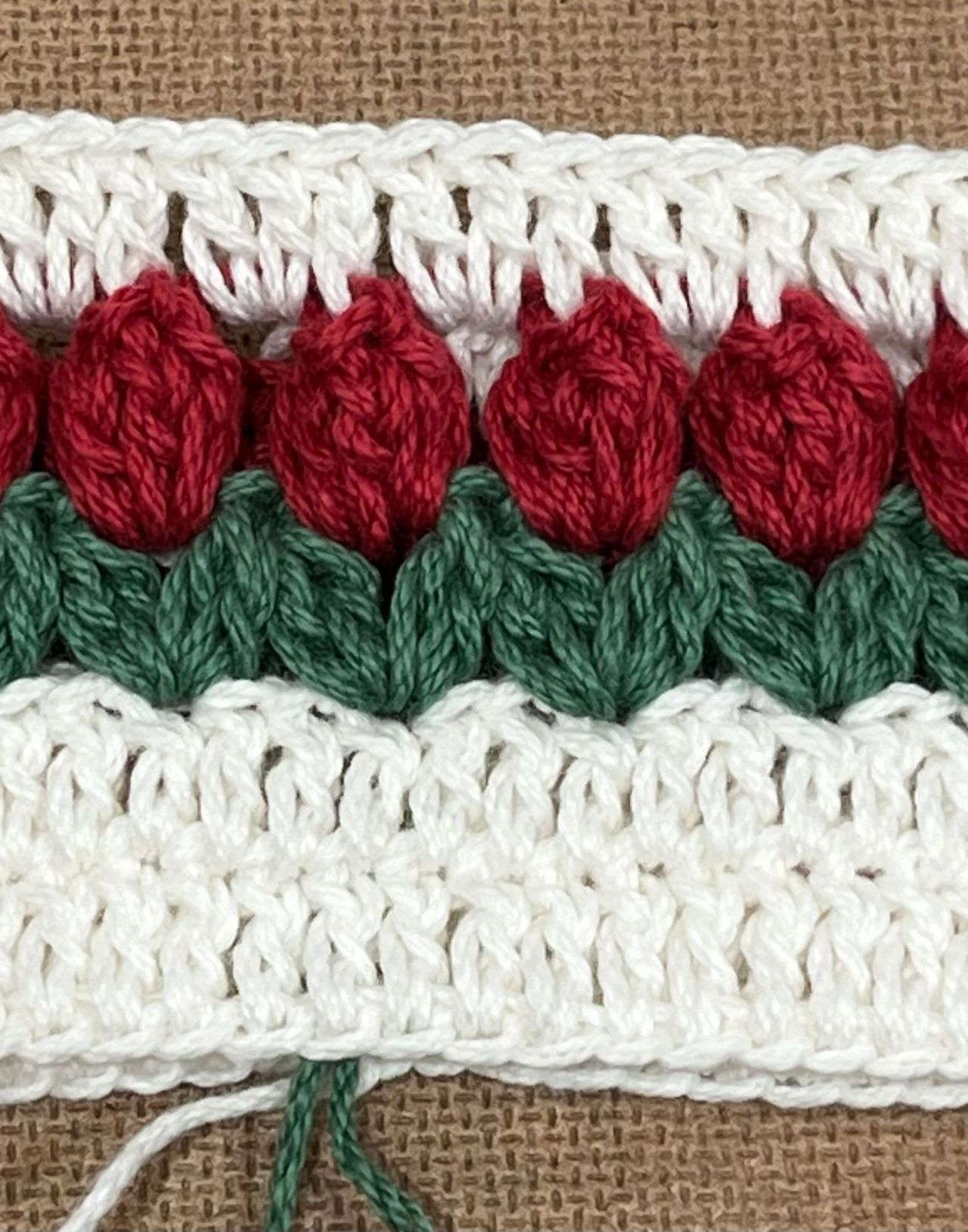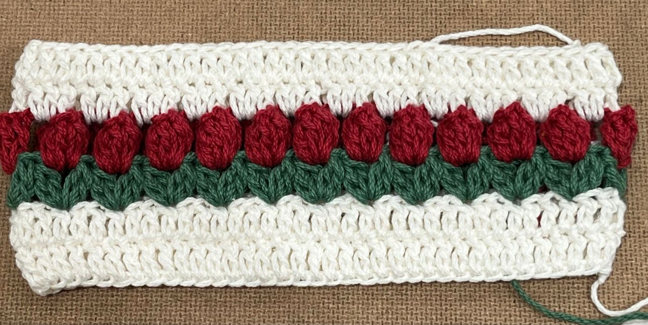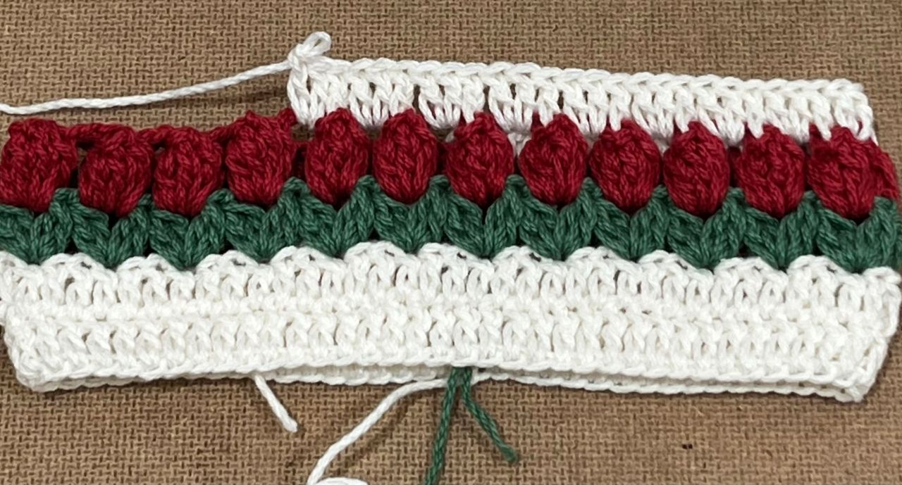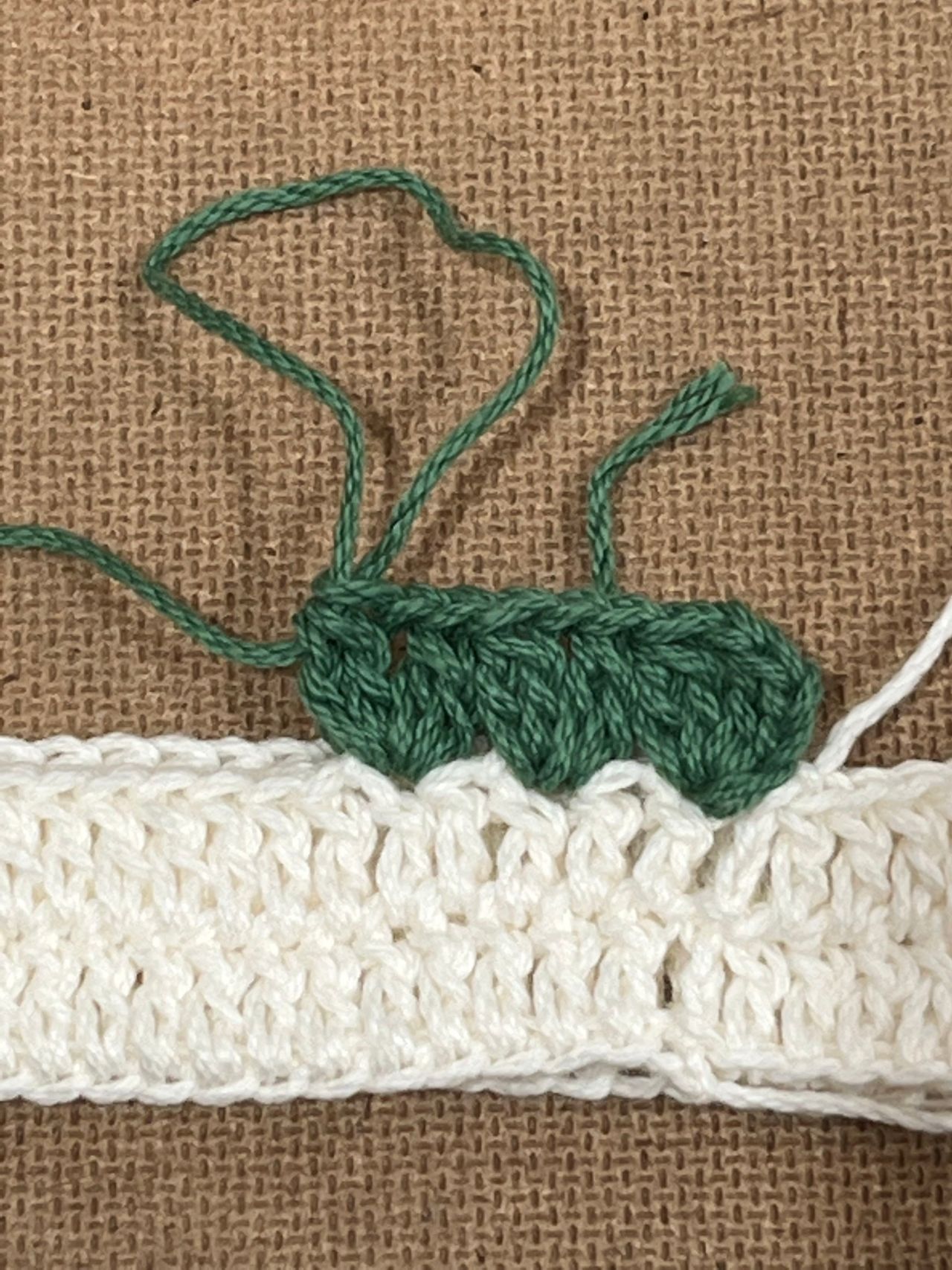 3段目は糸を変えて葉の部分を編みます。