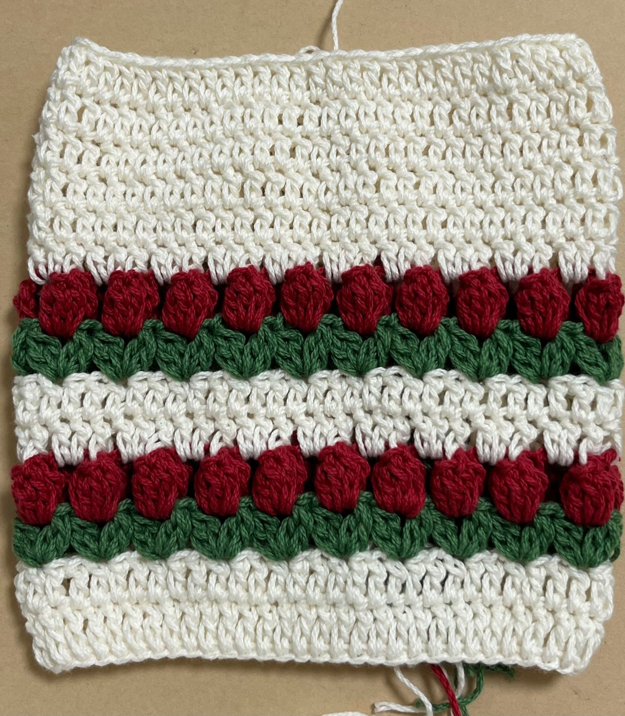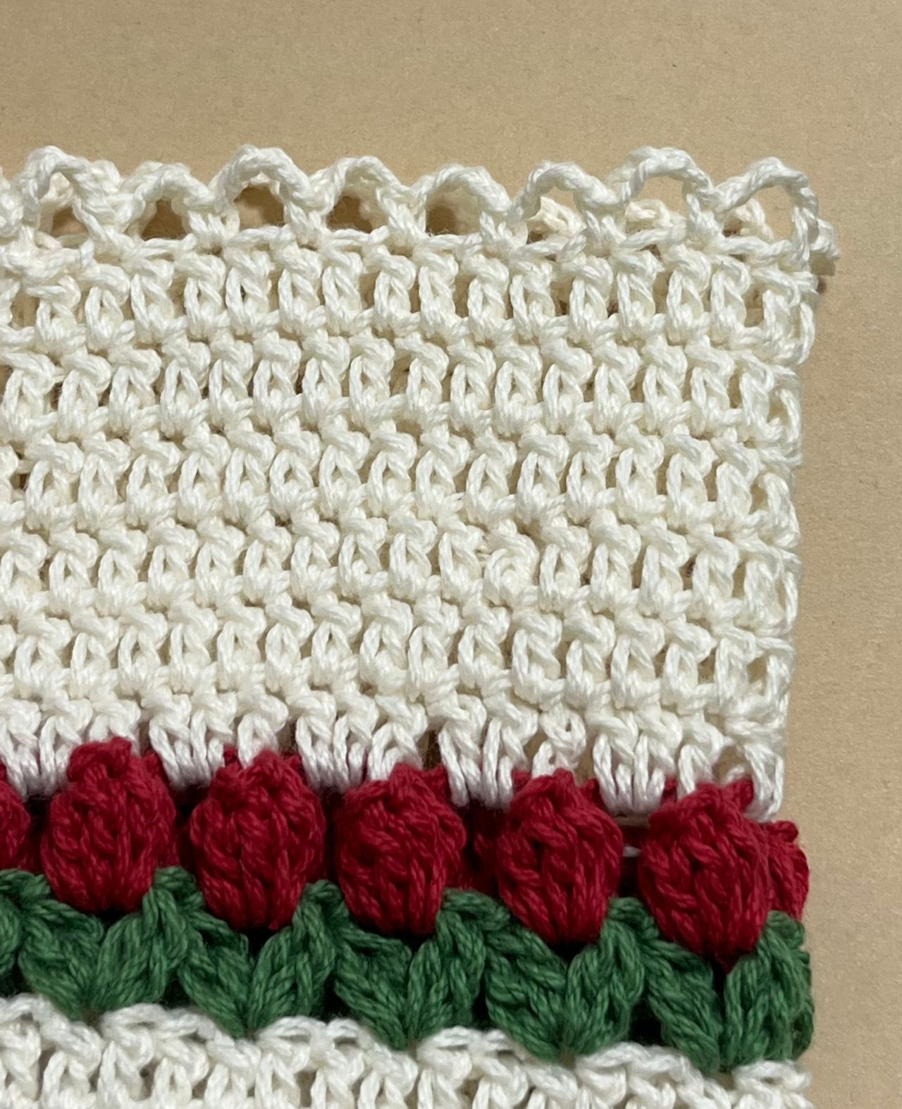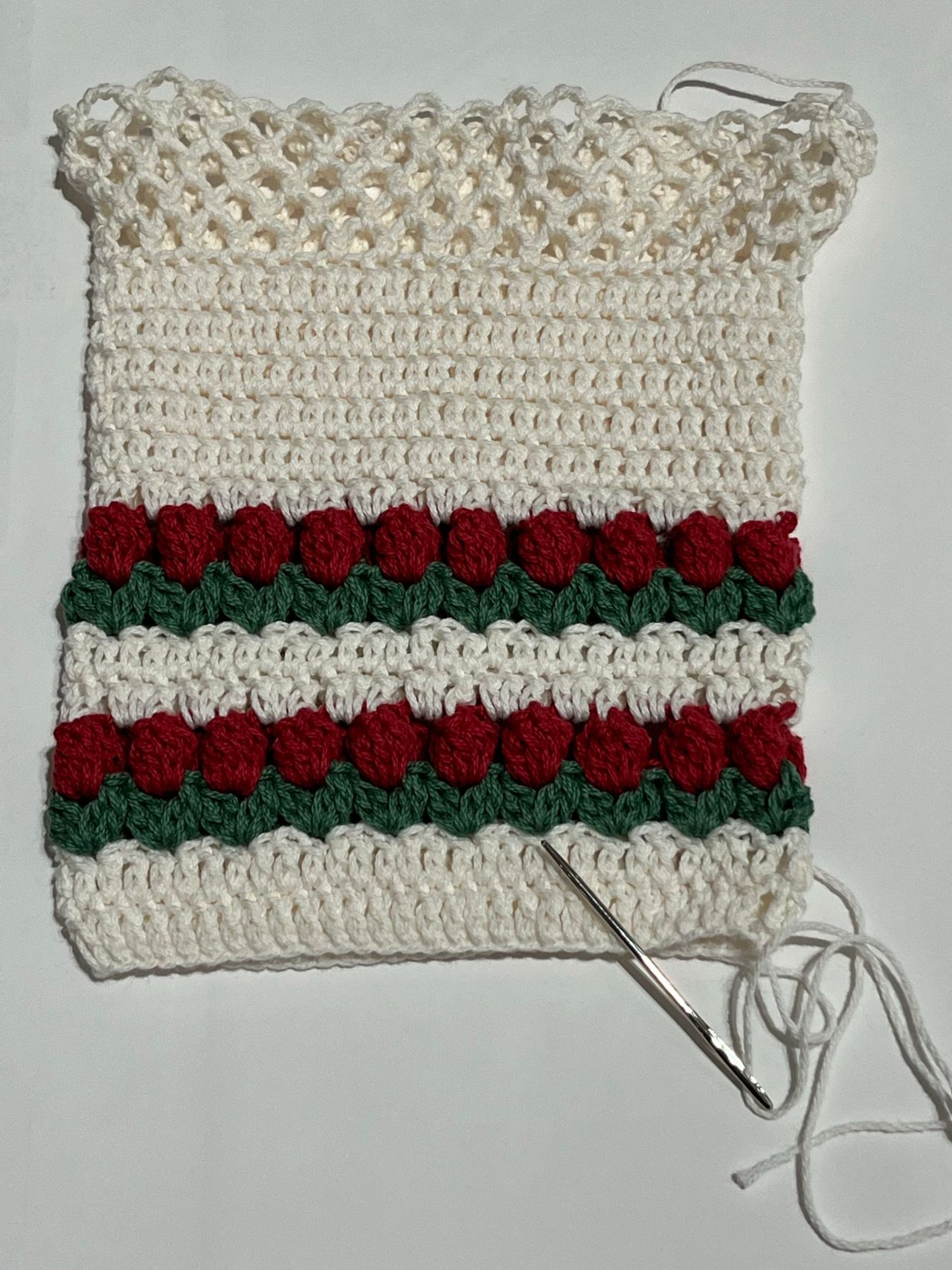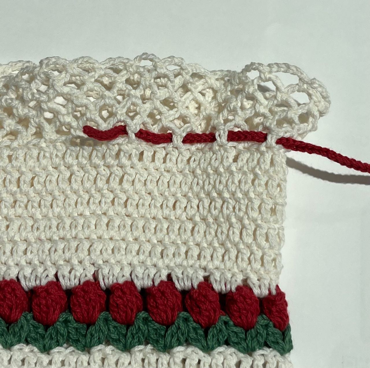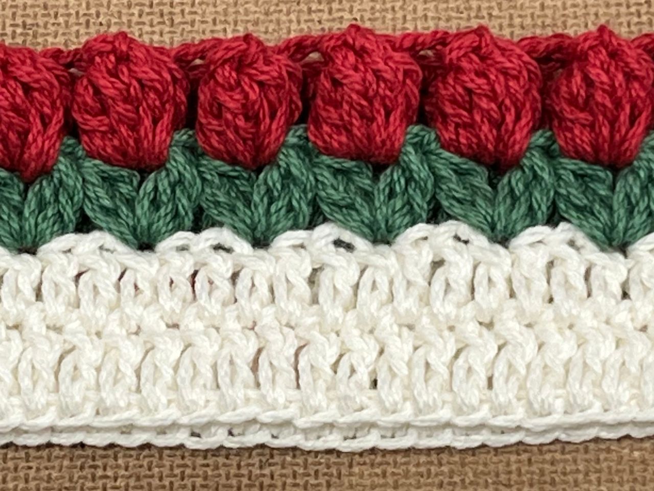 3段目は糸を変えて葉の部分を編みます。