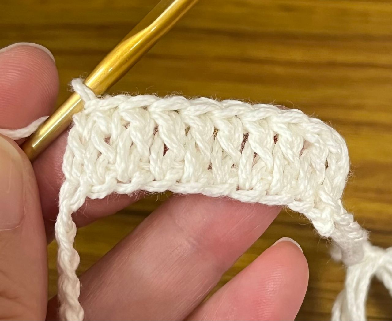 15〜19段はくさり4目のネット編みをします。