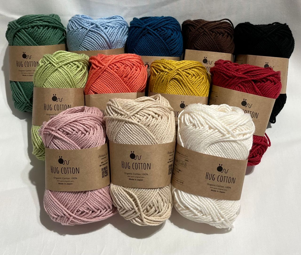 今回は、ハグコットンを3色使用しましたが、全12色ございます。
