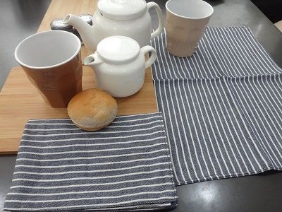 綿麻混合の生地でランチョンマットを作ってみました(*'‐'*)♪