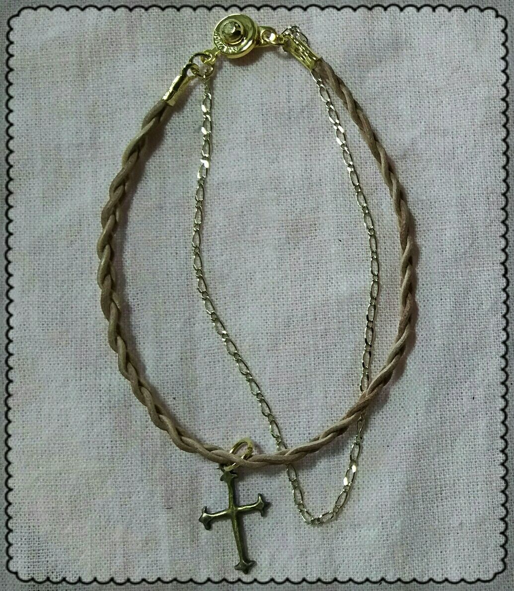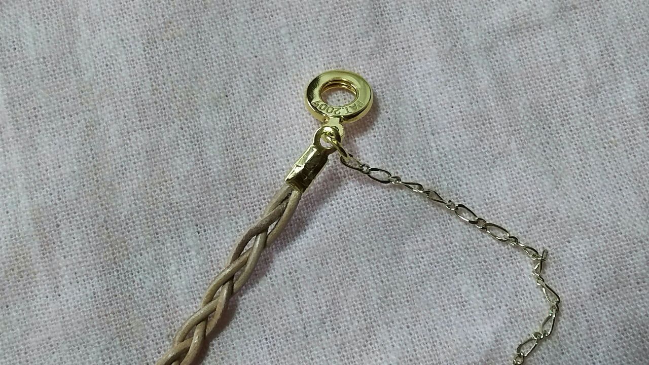 細めの革ひもを三つ編みにして、両端をカシメて、細いチェーンを付けます!