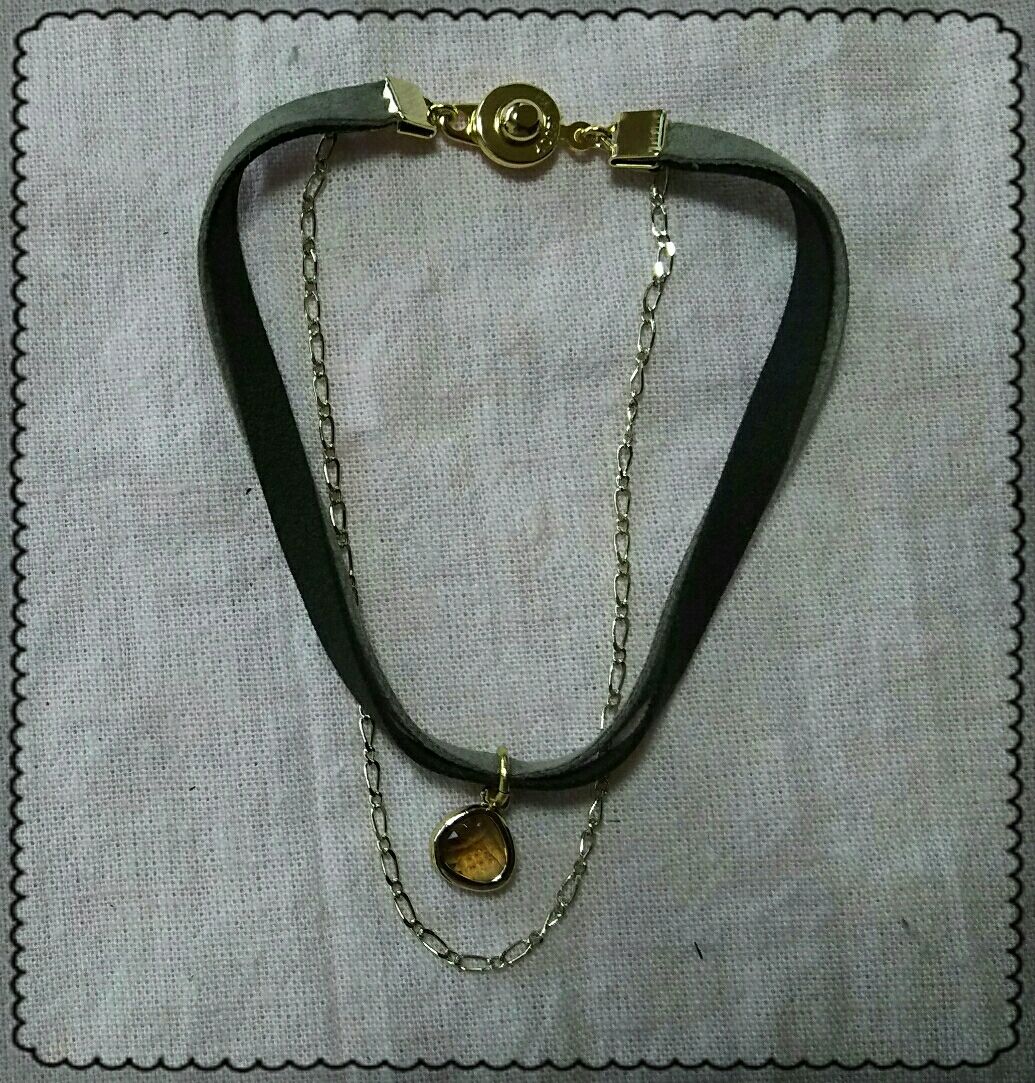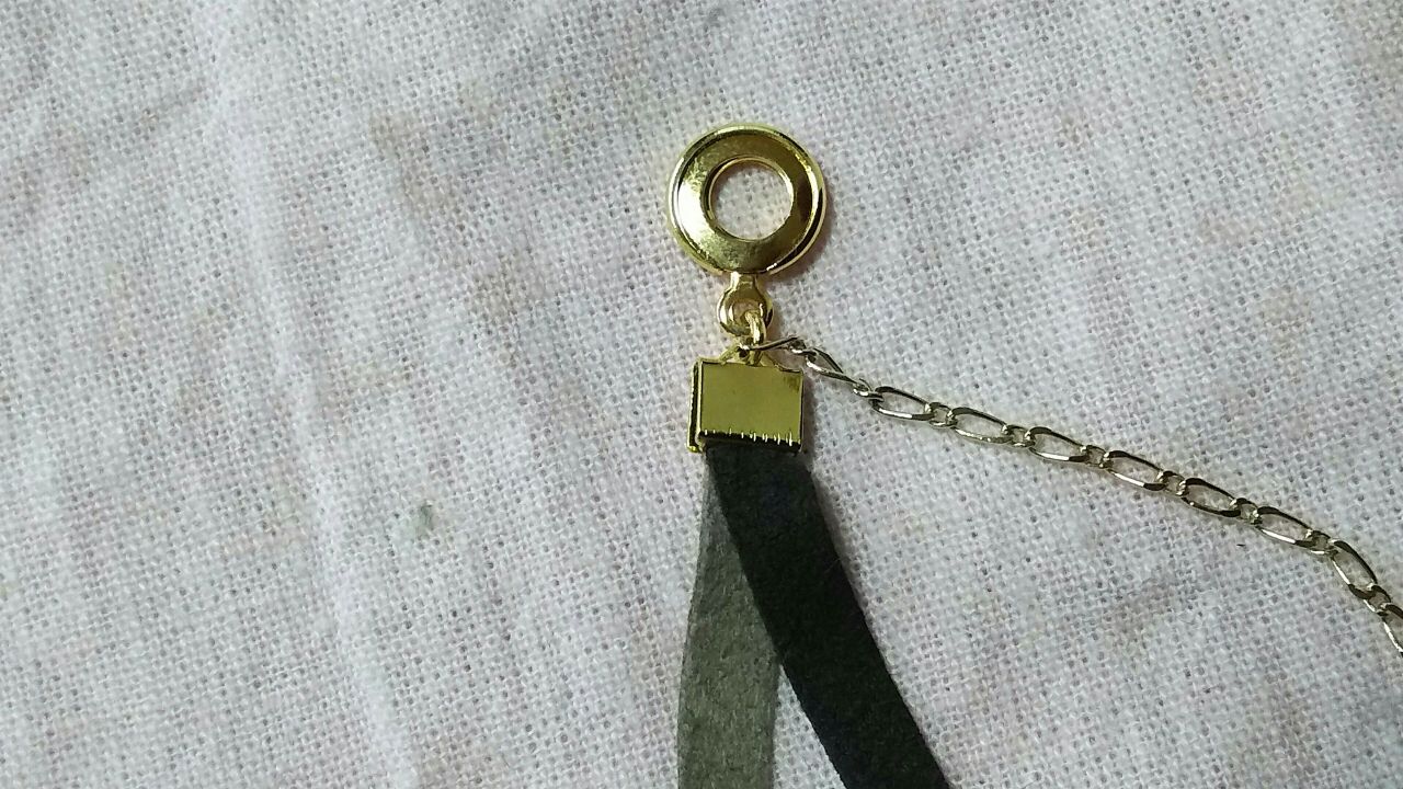 スエードの平紐2色を、チョーカー止めで両端を止めて、細いチェーンを付けました!