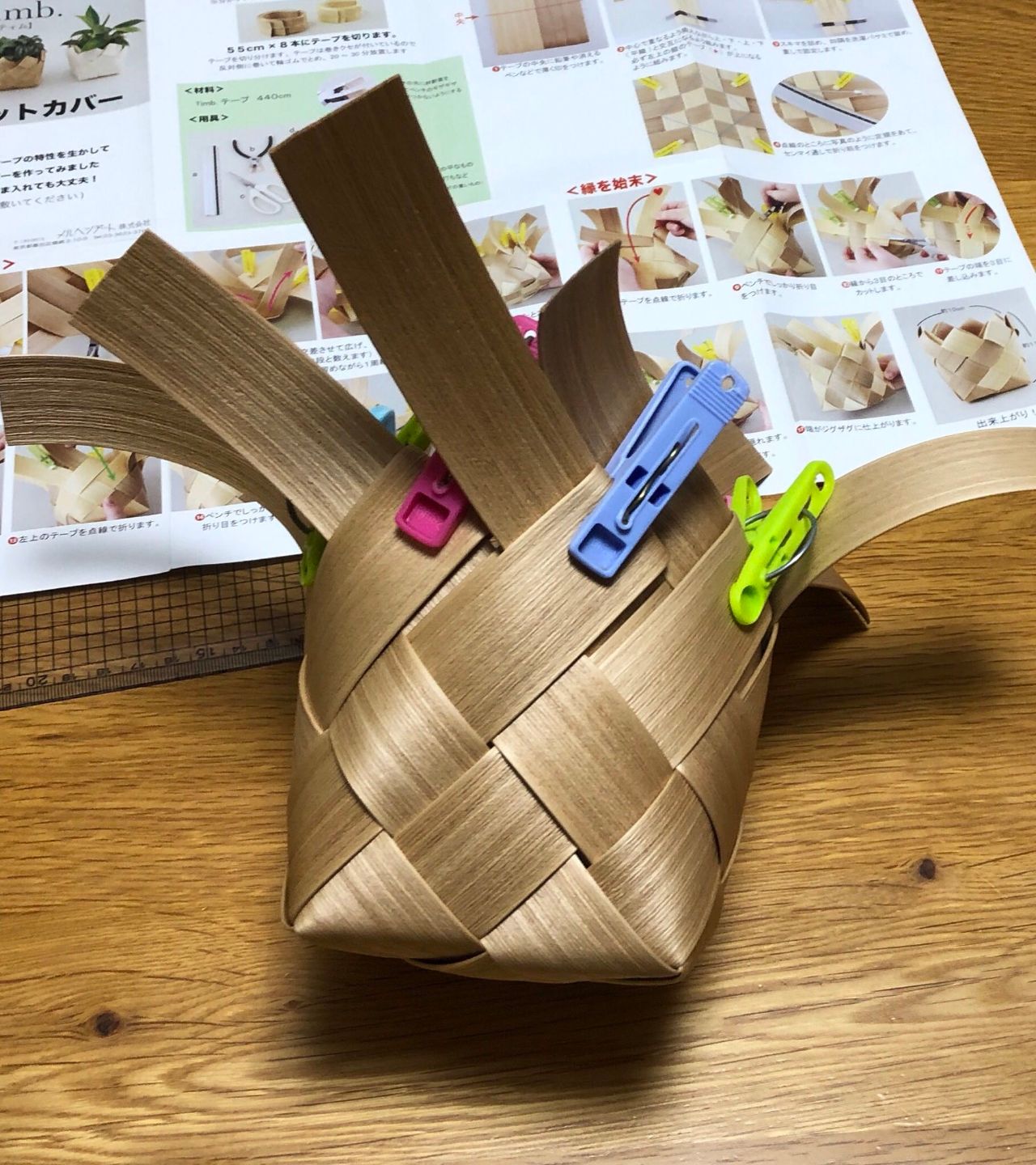 手芸の楽しさを感じ始めている18歳男子が今回は白樺風テープのプチポットカバーに挑戦です。