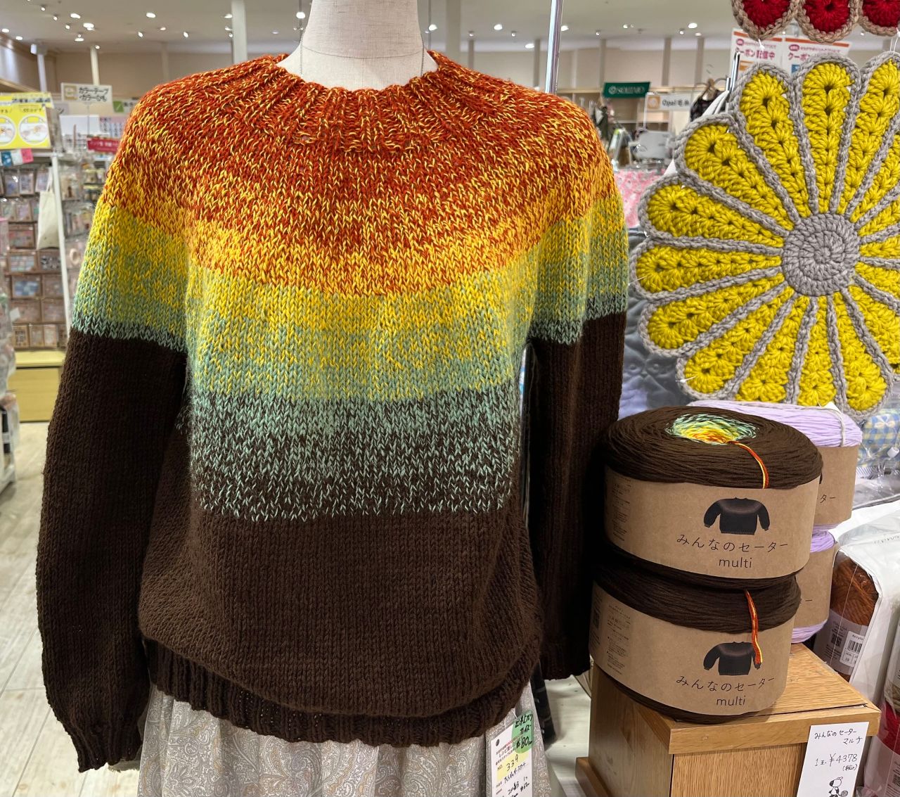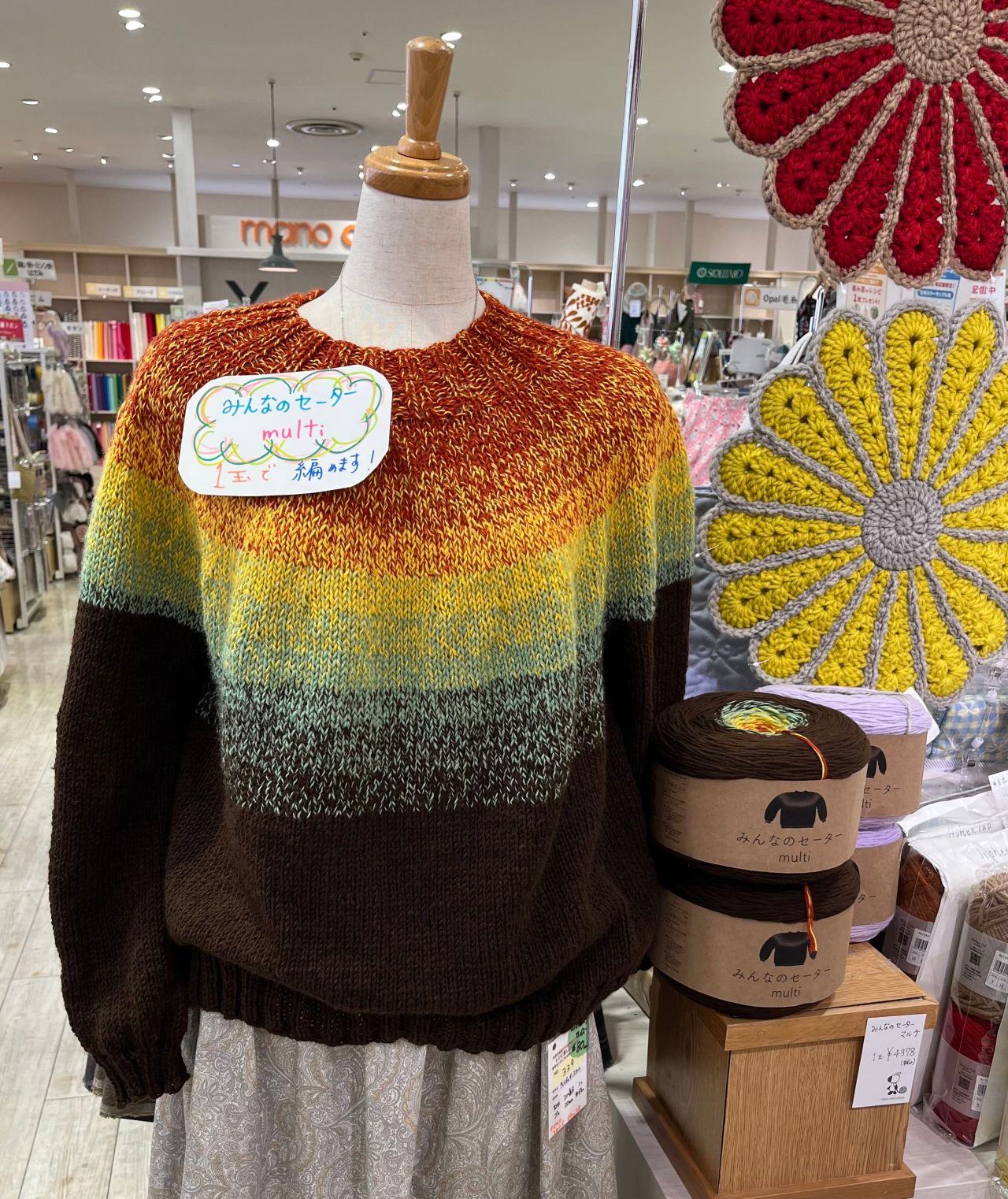 「みんなのセーター」という1玉でセーターが編めちゃう毛糸玉が入荷してます