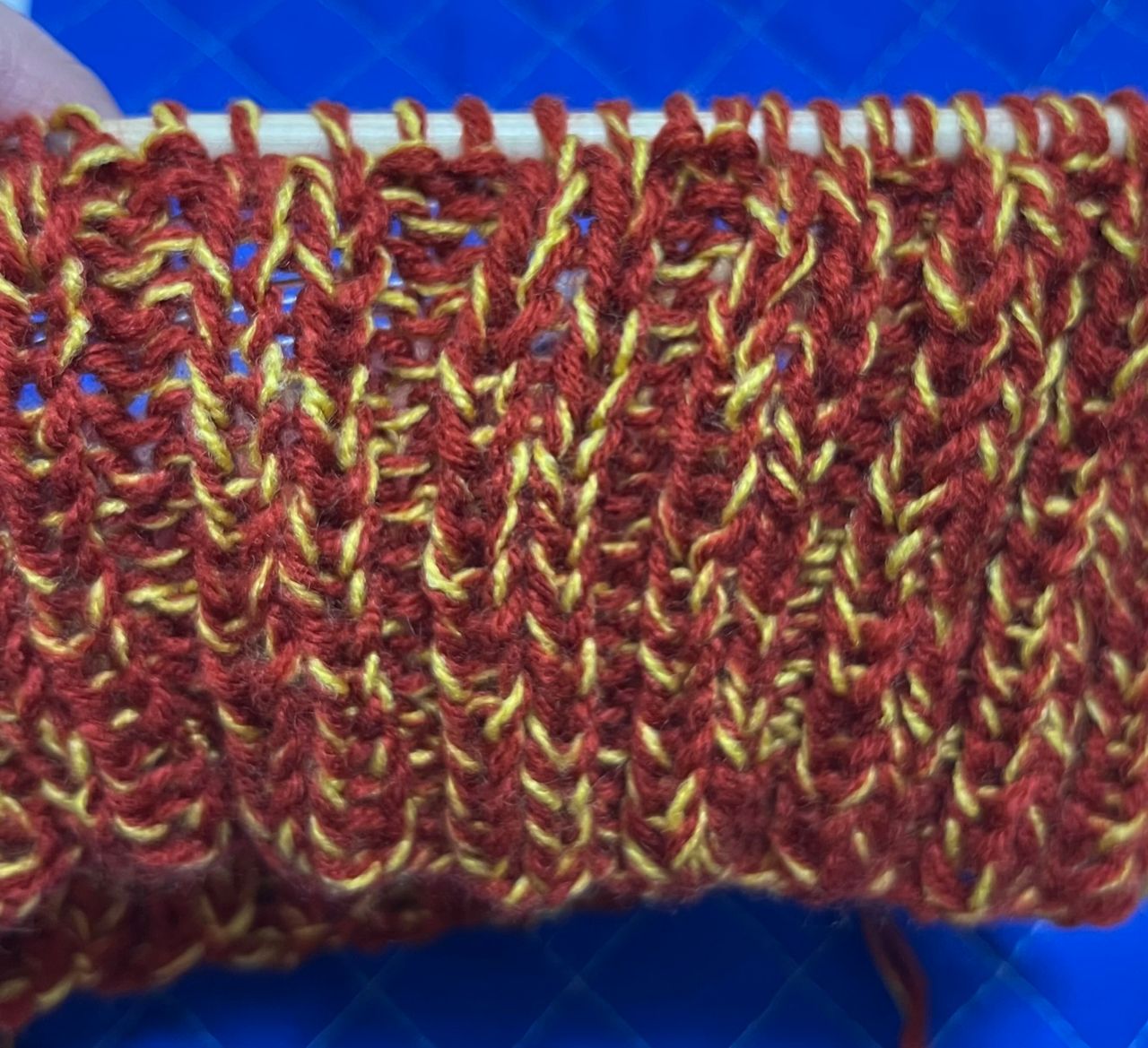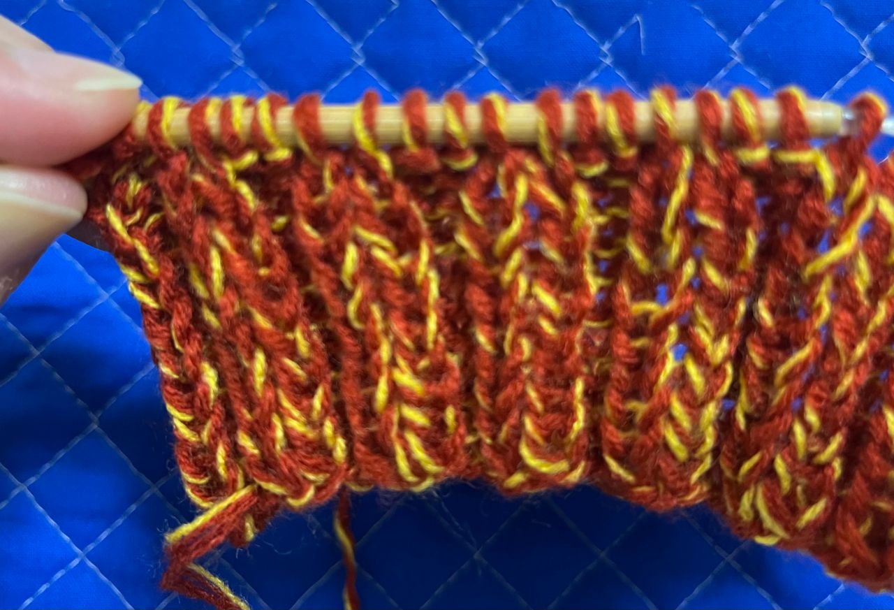 4本の糸の引き合わせで色が自然に変わっていくので編んでいて楽しいです