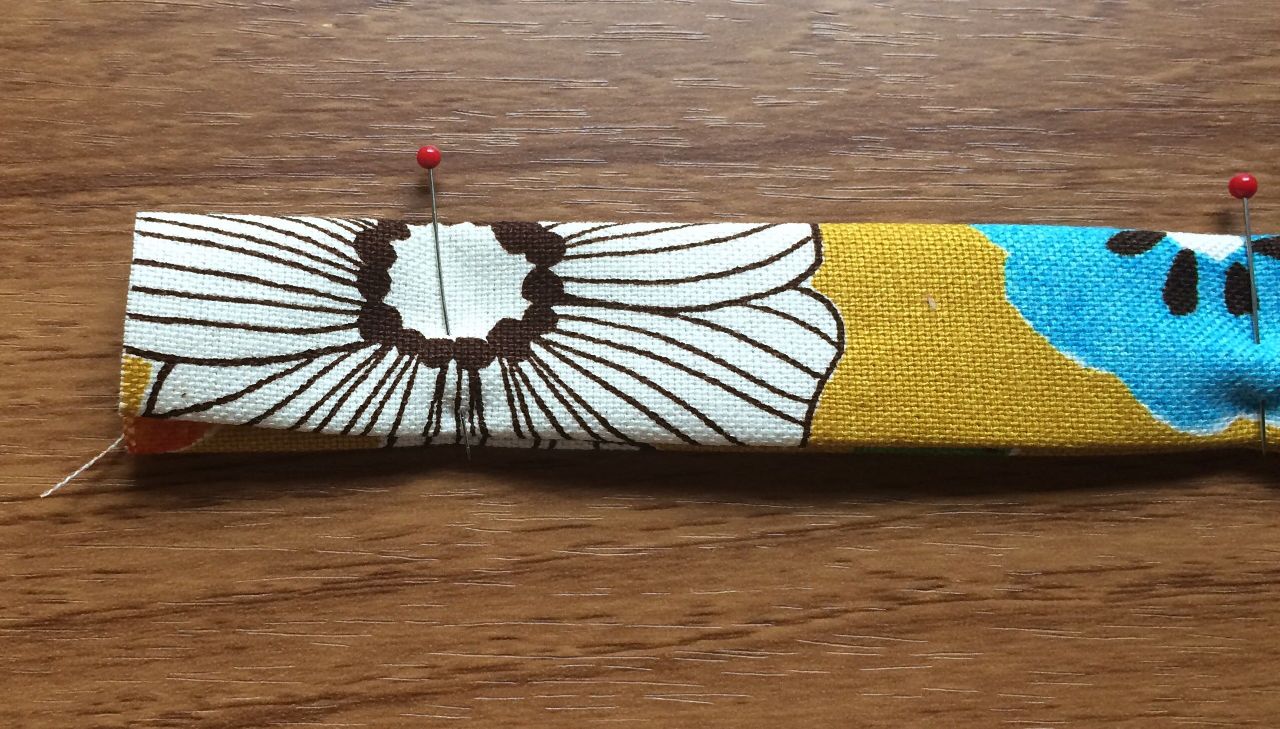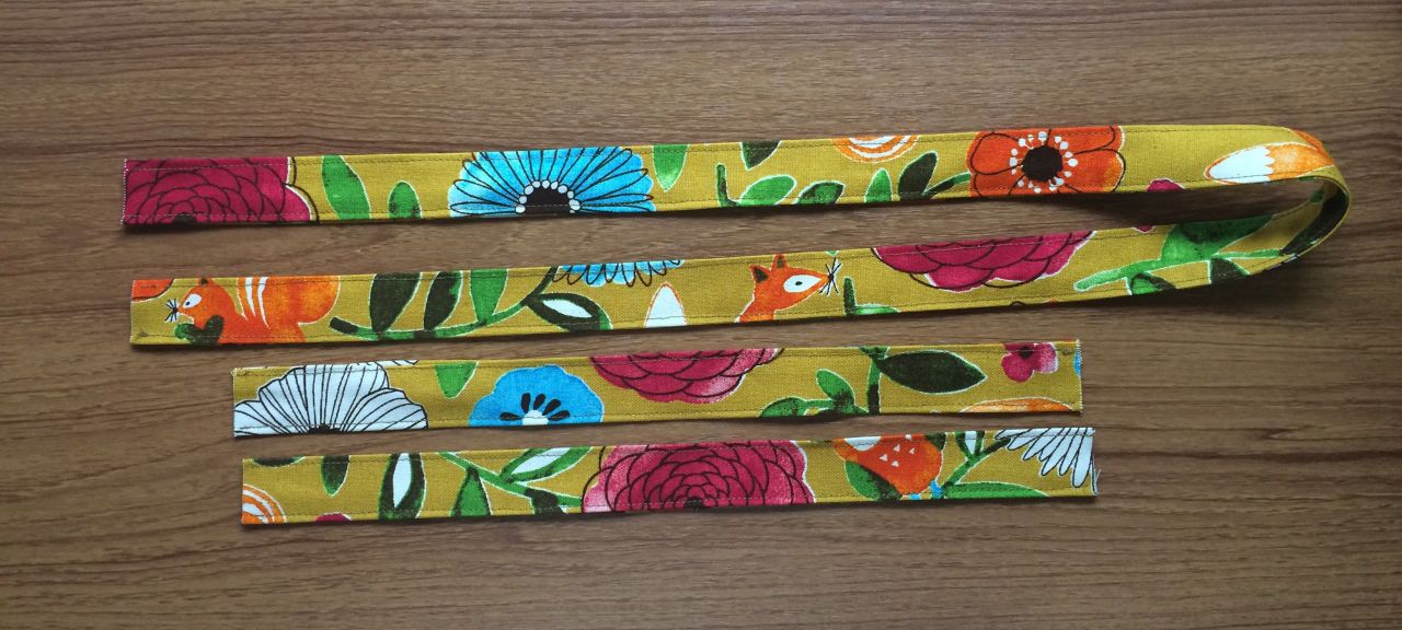 それぞれ出来上がりに折り、両端にステッチします (アイロンをかけると縫いやすくなります)